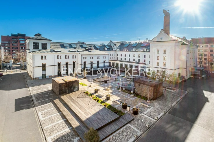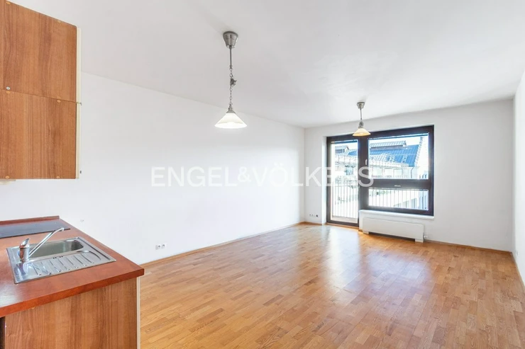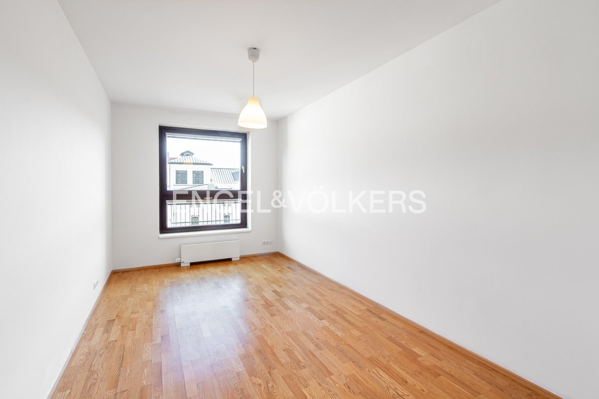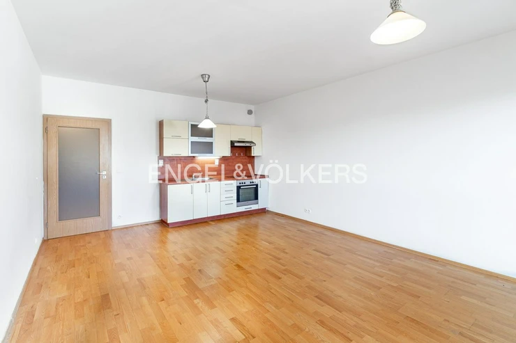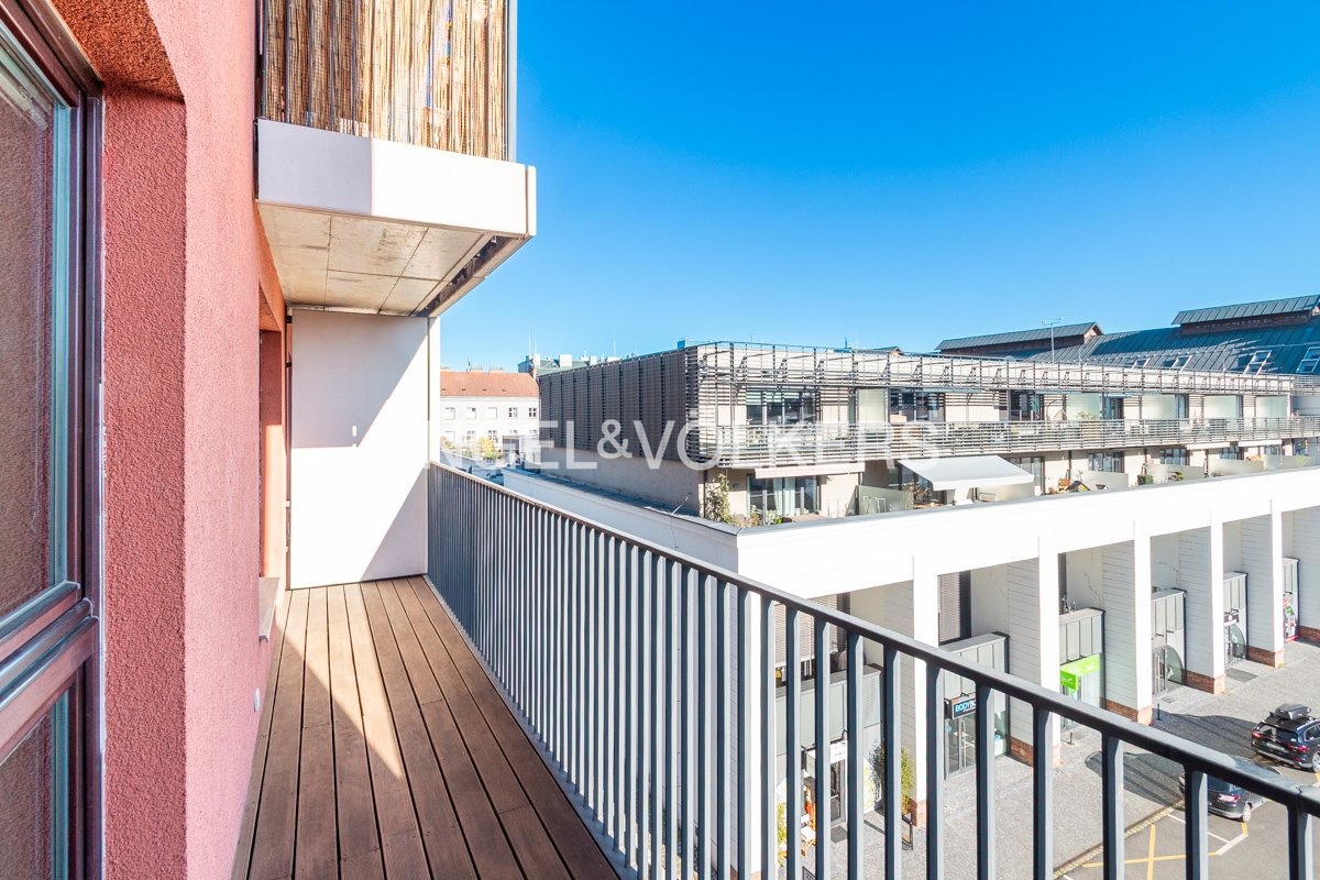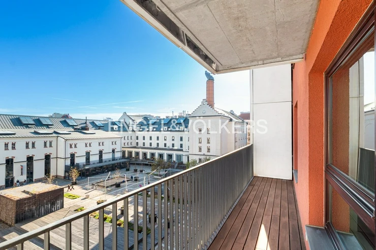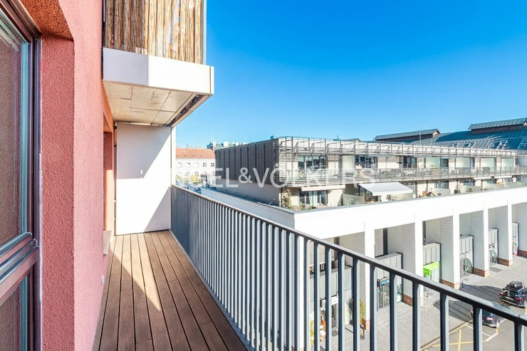 An elegant, bright, and airy 2+kt apartment with an area of 62 m² and a spacious 9 m² balcony, located in the prestigious Holešovický Pivovar residence at U Uranie, Prague 7 – Holešovice, is available for long-term rent.