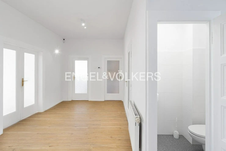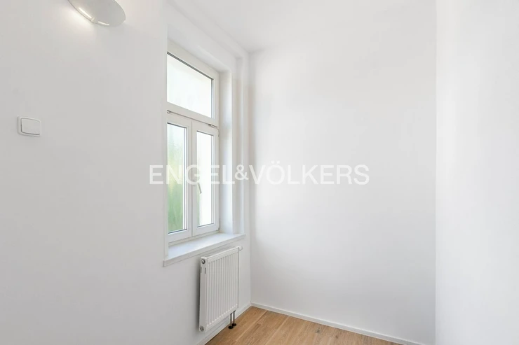 The apartment consists of three separate rooms. It also includes a smaller 4 m² room that can be used as a home office, walk-in closet, or storage space. There is a separate kitchen, fully equipped with all appliances. Behind the kitchen is a practical utility room, and there is also a bathroom with a shower and toilet, as well as a separate toilet. The rooms face south, and the kitchen faces north.
