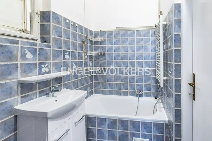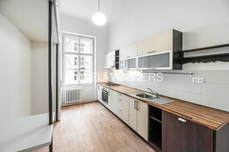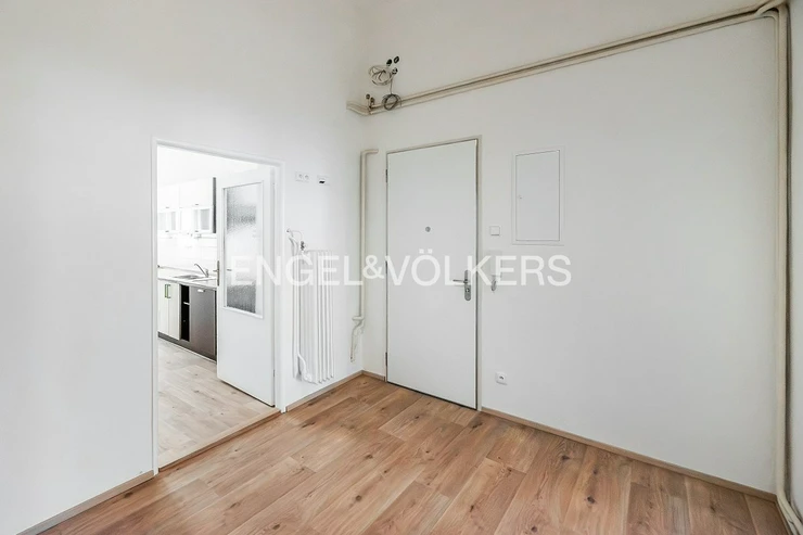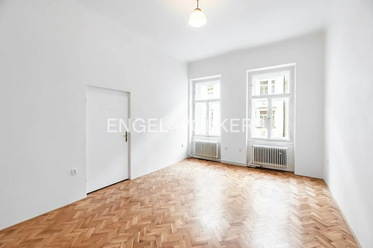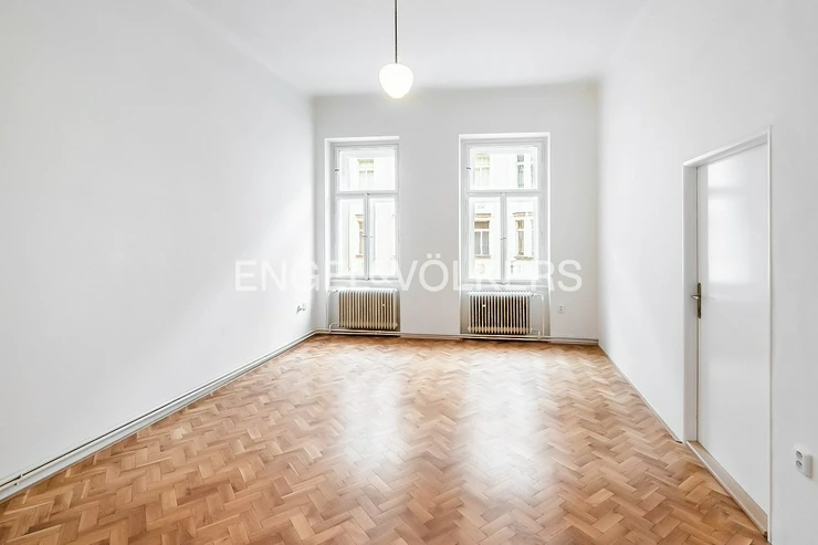 The building is located in a quiet residential area of Vinohrady, not far from the National Museum and Náměstí Míru Square. The apartment itself features two bedrooms, one of which is a separate room and boasts a beautiful historic stove, a feature that is becoming increasingly rare today. The second bedroom is accessible from both the bathroom and the living room. The kitchenette is separate and equipped with a gas stove, a new oven, and a dishwasher. A pleasant bonus is the spacious and practical pantry right in the kitchen. The bathroom features a shower and also has a connection for a washing machine. The cosy atmosphere of the apartment is perfectly complemented by beautifully sanded parquet floors and casement windows, which make the south-facing rooms especially bright. The apartment also includes a basement storage unit, ideal for storing seasonal items.