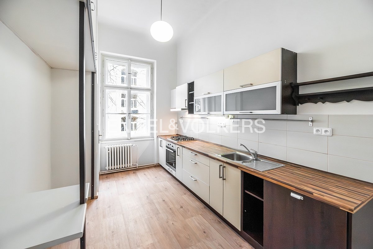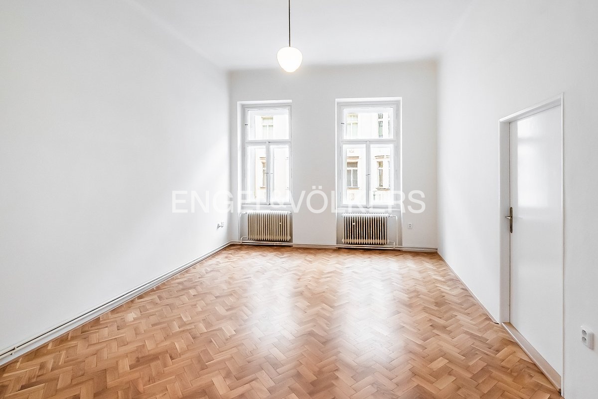 We are offering a spacious 3+1 apartment for long-term rent on the 2nd floor of a well-maintained apartment building with an elevator on the quiet Mánesova Street, near Riegrovy Sady Park.