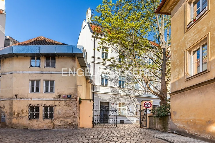 The Újezd – Malá Strana neighbourhood is one of the most sought-after addresses in Prague. The Újezd tram stop is located directly in front of the building, providing quick access to the city centre. Petřín Park, Kampa, and the Vltava riverbank are within walking distance. The area offers many cafes, restaurants, galleries, and small shops, yet retains a quiet and residential atmosphere. The combination of the historic centre, greenery, and excellent transport links makes this address an exceptional place to live.
