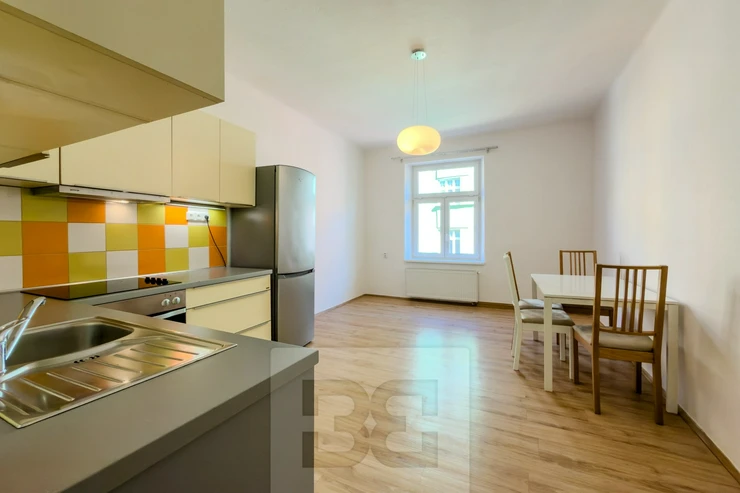 We offer for rent a cozy, furnished 1-bedroom apartment with a living room and kitchenette (2+kk) with a total area of 48 m², located on the 3rd floor of a brick building with an elevator in the popular Prague 4 – Nusle district.