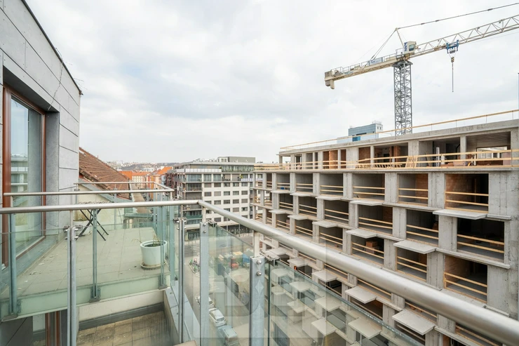 The location offers full civic amenities, including shops, restaurants, services, a post office, and a pharmacy. Tram and bus stops are within walking distance, and metro stations Palmovka and Vltavská are just a few minutes away on foot. The surrounding area also offers a wide range of leisure activities.