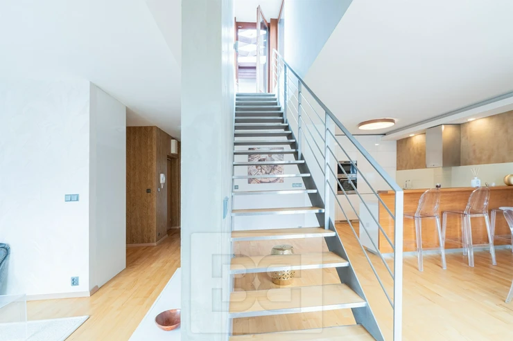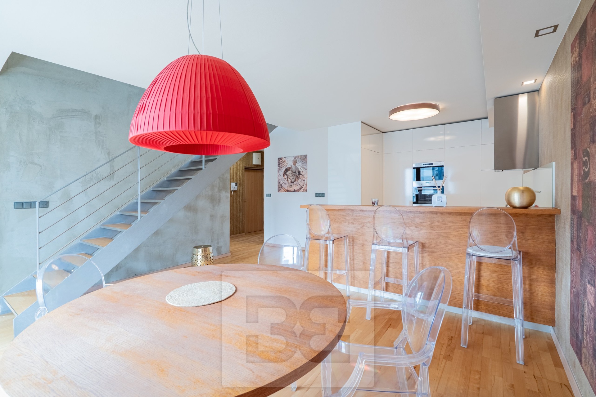 We offer for long-term rent an exceptional apartment with a total area of 110 m², located on the top (8th) floor of a residential building from 2009 with a reception.