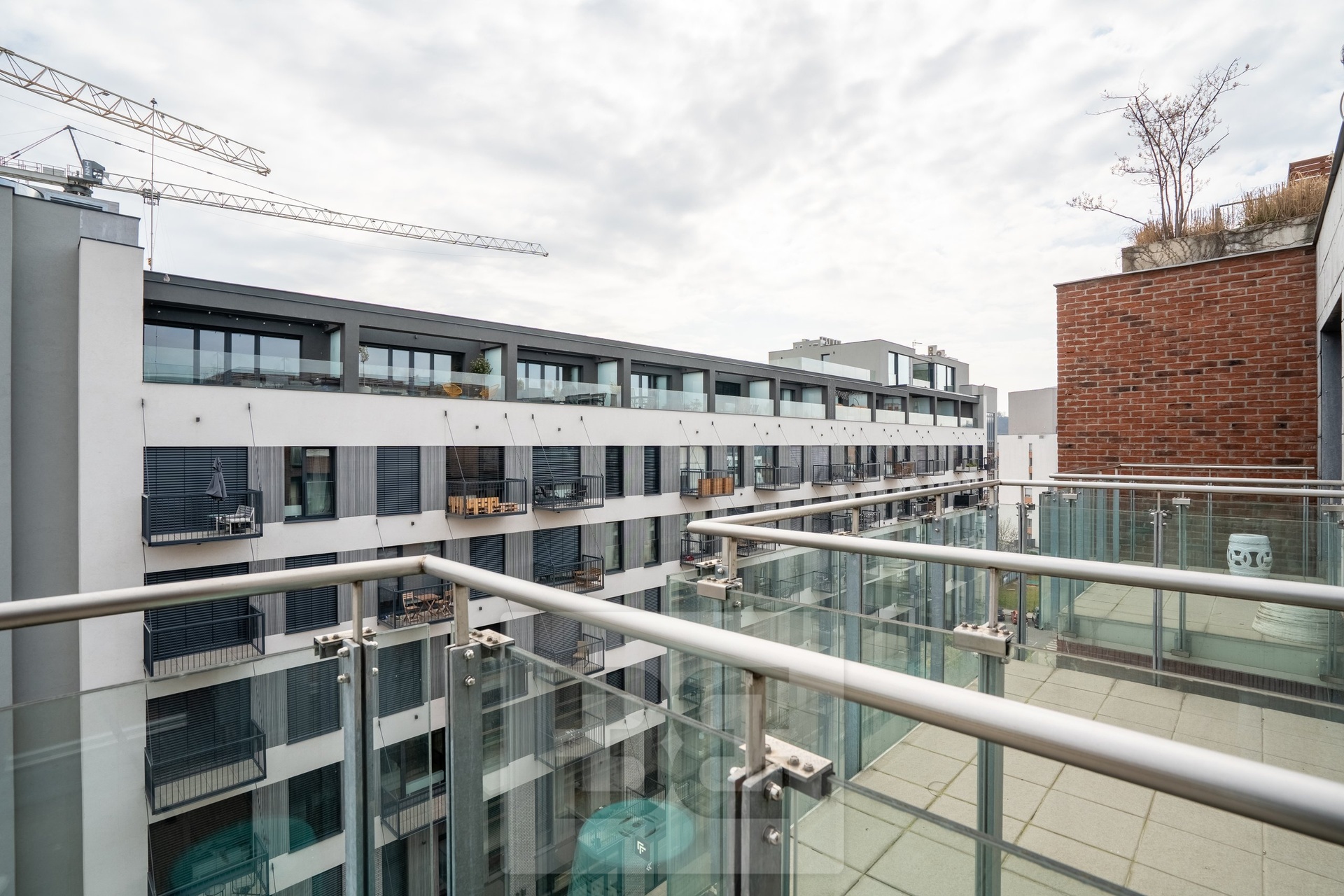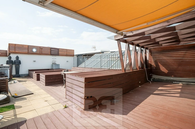 The apartment features four balconies, each accessible from individual rooms, and a unique rooftop terrace of 117 m² offering generous outdoor space. The terrace will include an outdoor kitchen and is also prepared for the installation of a hot tub.
