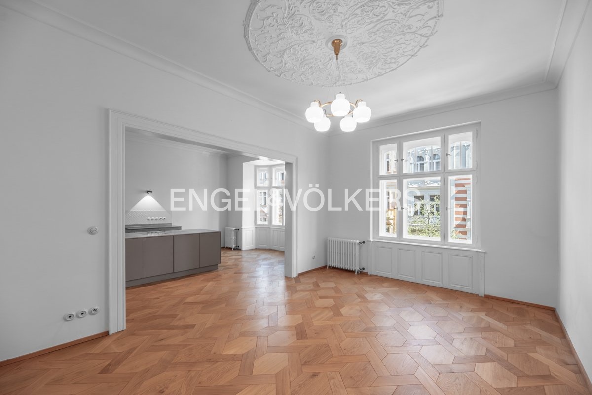 We offer for rent an exceptional 4+kt apartment with an area of 133 sqm, located on the 2nd floor of a well-maintained building with an elevator (to the mezzanine) in Chodská Street, Prague 2 – Vinohrady.