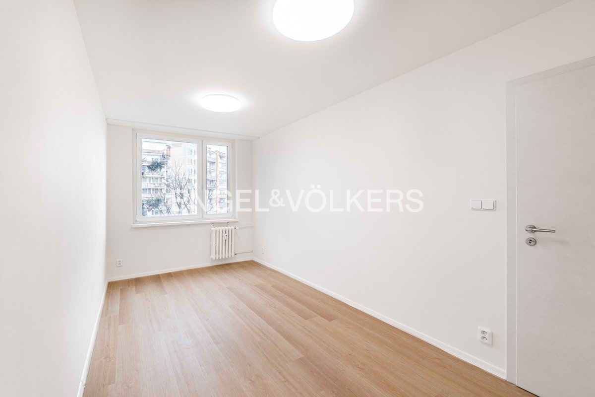 Behind the building, you’ll find a playground and a workout area, or you can take a walk all the way to Stodůlky Central Park. The Luka metro station is within walking distance, and you can drive directly to Smíchov in under 20 minutes.