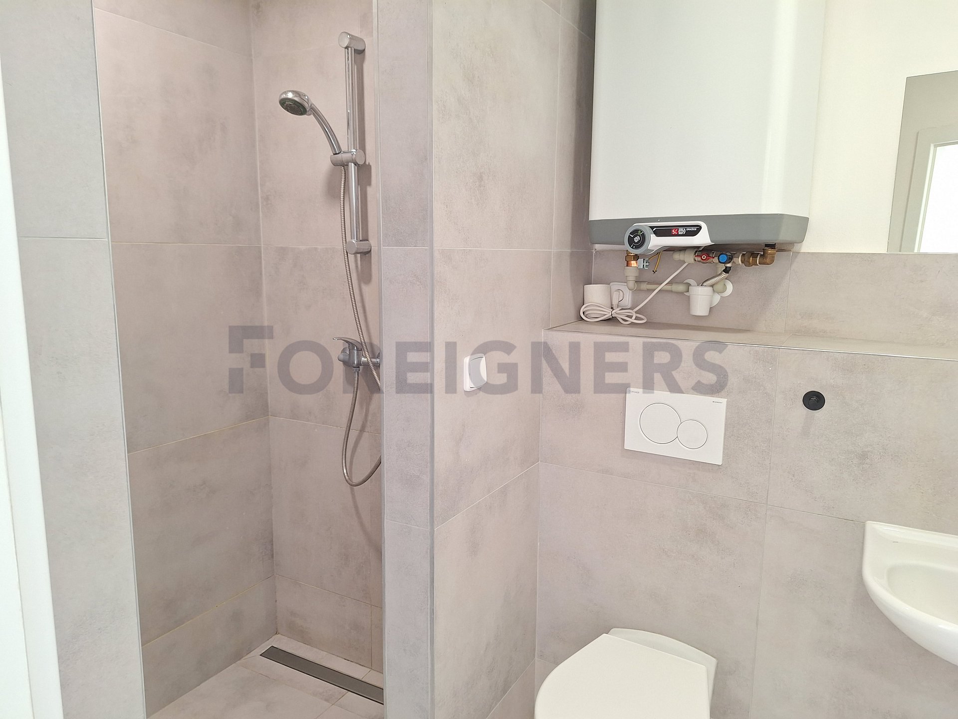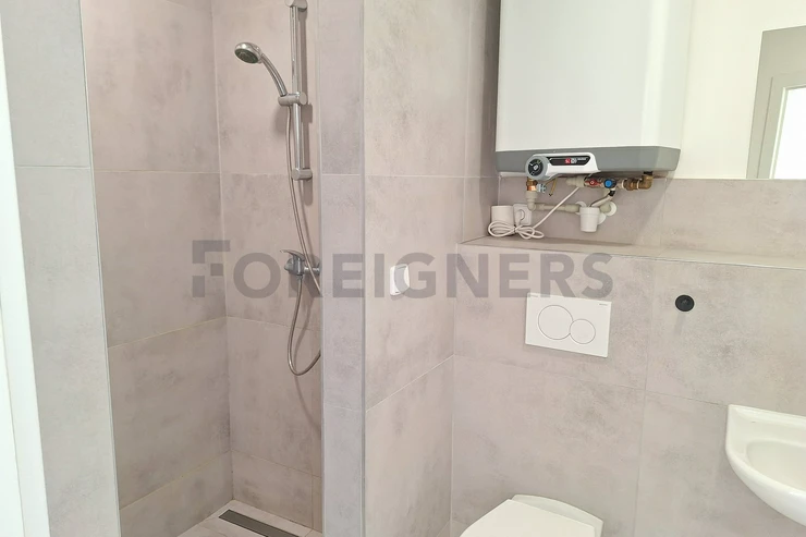 The atelier is rented furnished. The atelier has an entrance hall, bathroom with shower, mirror, sink and a toilet.