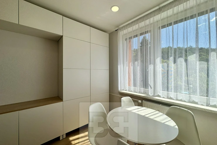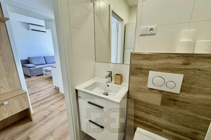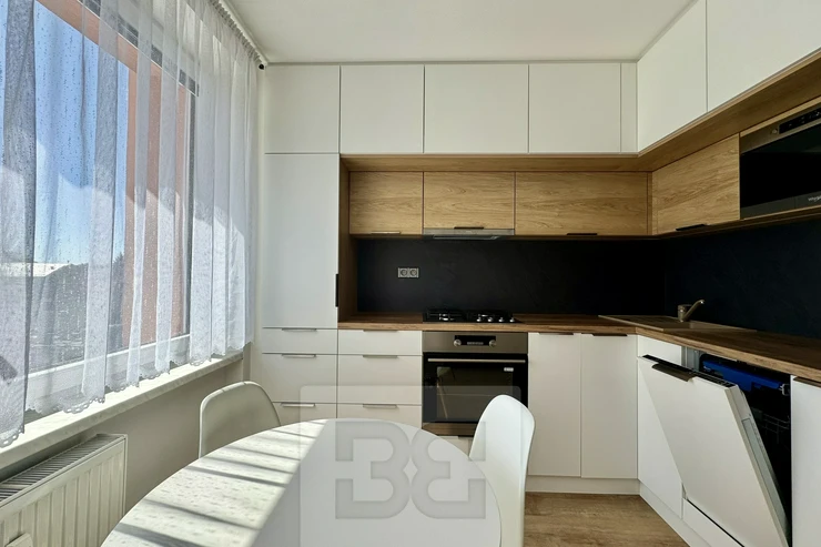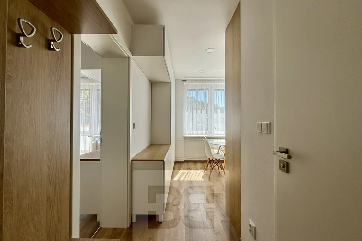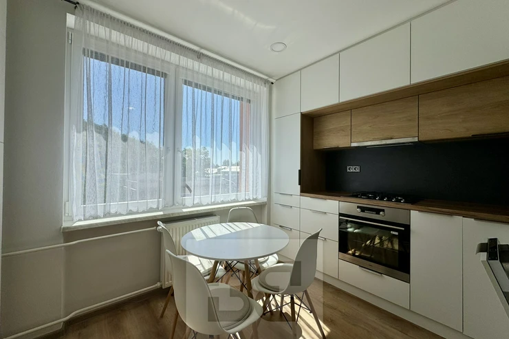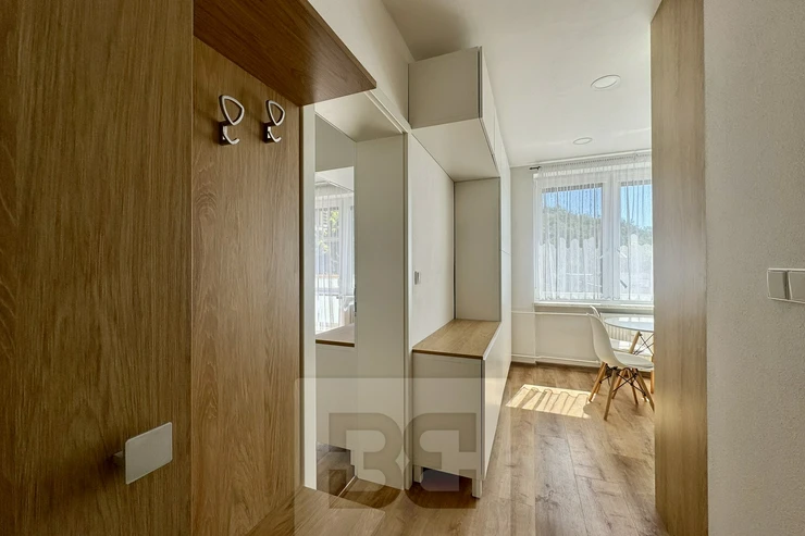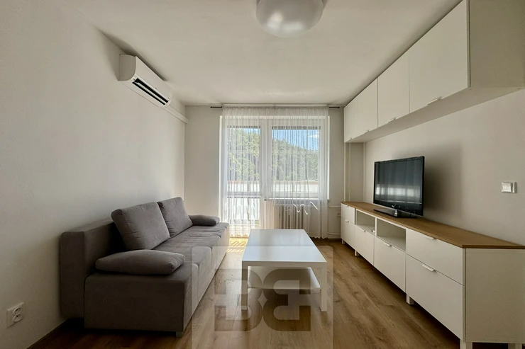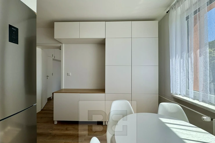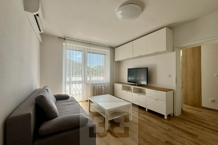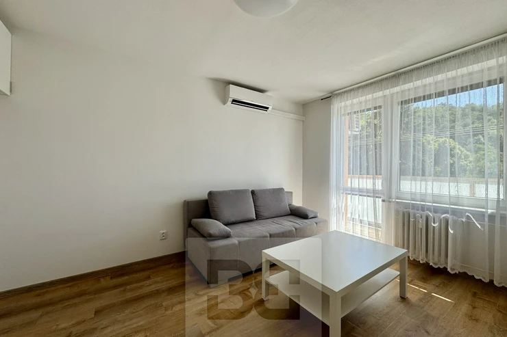 We are offering a beautiful 1+1 apartment for rent on Popkova Street in Kuřim! This cozy apartment with a total usable area of 32 m² is located on the 3rd floor of a building in very good condition. The apartment has everything you need for comfortable living. A spacious hallway with custom storage space, the apartment also offers a beautiful bathroom, a fully equipped kitchen with all appliances, a table, and chairs. Everything is custom-made by a carpenter. The spacious room is furnished with a sofa, TV wall, and custom storage space. There is also a balcony with a view and a pleasant seating area, a cellar for additional storage, and air conditioning. This beautiful apartment is the ideal place for comfortable living. Don't hesitate to contact us for more information or a viewing!