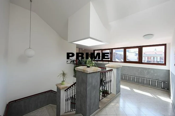 Air conditioned, 4 bedroom, 2 bathroom, unfurnished duplex apartment for rent, 168.43m2, with 2 terraces (12m2 and 2m2), situated on the 3rd and 4th floors (2 top floors) of a renovated building with a lift and a reception desk. The building is located in Smíchov, just steps away from tram stops, a few minutes´ walk to Anděl metro station on yellow line "B" and very close to Nový Smíchov shopping mall, restaurants, cafés and a post office.