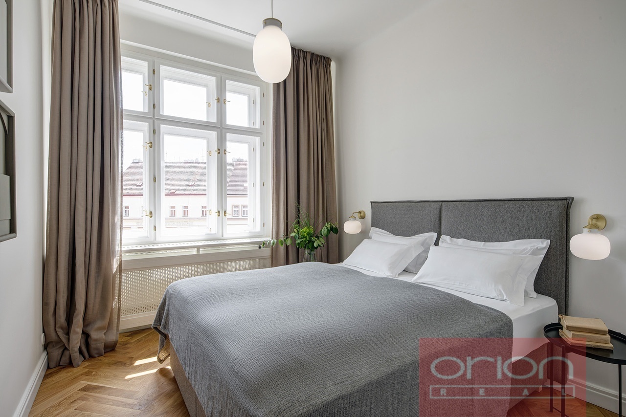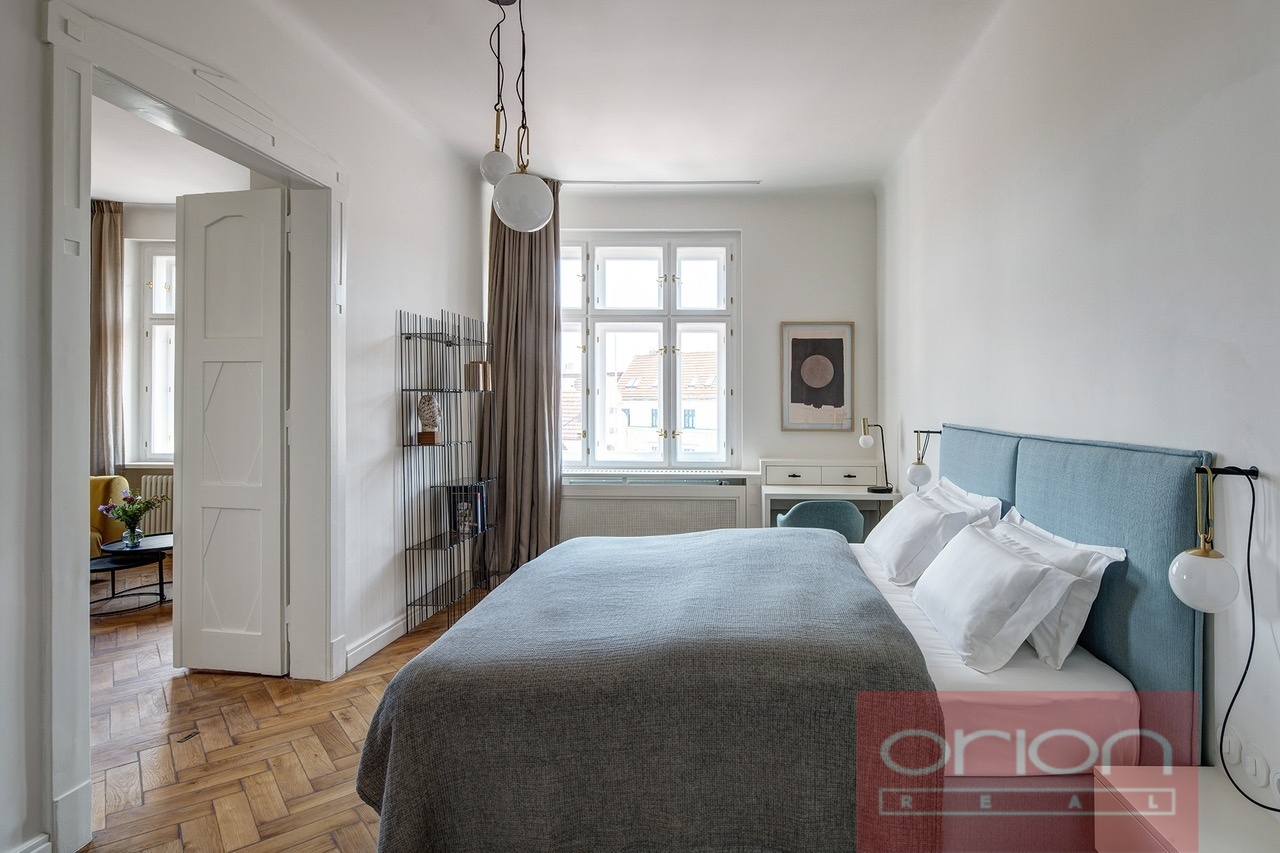 We offer for rent a luxurious, fully furnished 2-bedroom apartment with a total area of 86 sqm, located in a residential building with an elevator in the highly sought-after area of Prague 6 - Dejvice, just a short walking distance from Hradčanská metro and tram stops.