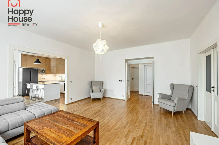 We exclusively offer for rent a spacious and very bright corner 4+1 apartment with a total area of 129 sqm, located on the 5th floor of a well-maintained brick building with a lift in the prestigious area of Prague 6 – Dejvice, Jugoslávských partyzánů Street. The apartment features two balconies and a cellar and offers pleasant views of the surroundings.