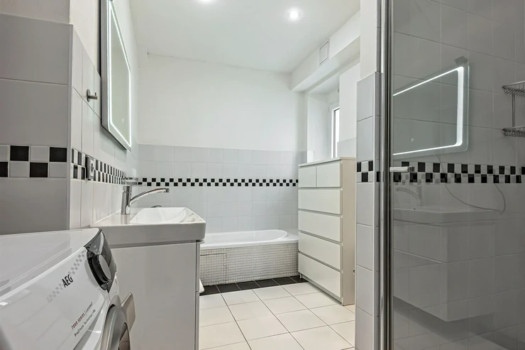 The interior stands out for its airy feel, generously sized rooms and abundance of natural light. The layout includes an entrance hall, a spacious living room, a separate kitchenWashing machine with dryer available. with a dining area, three separate (non-walk-through) bedrooms, two bathrooms and a separate toilet. All rooms are independently accessible, ensuring maximum privacy.