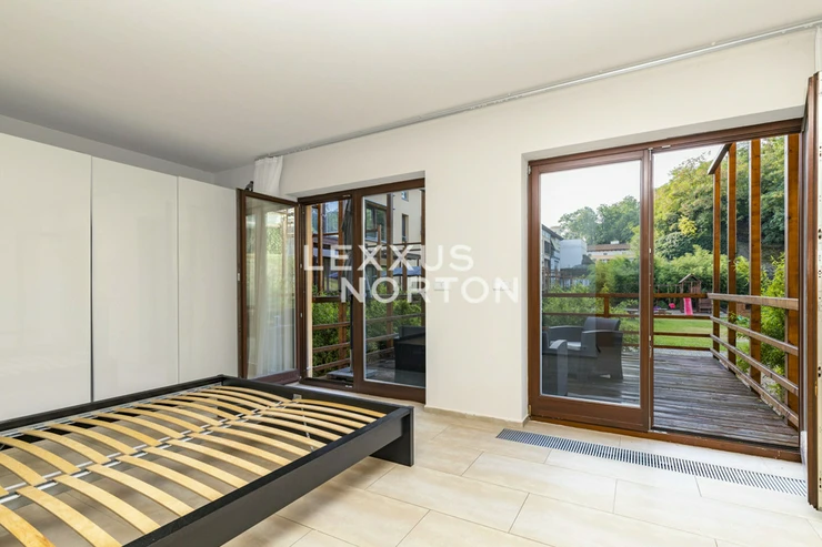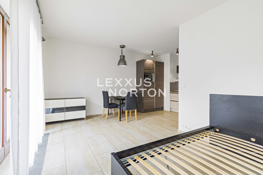 We offer for rent furnished studio apartment of 37 sqm with terrace, situated on the 1st floor of the residential complex Cisarsky Mlyn with elevator, fitness, sauna and underground garage. The property is located in an attractive location of Prague 6 - Bubenec in close proximity to the tennis courts of the Royal Stromovka Reserve.This studio apartment for rent features an entryway, a living area with a fully equipped kitchenette, a dining and sleeping area, and one bathroom. The property includes a 20 sqm terrace. The apartment features a fully equipped kitchenette (refrigerator, freezer, oven, glass-ceramic stove, microwave, and dishwasher), a dining table and sofa set, a bed, a built-in wardrobe, and a bathroom with a shower.A desirable Prague district with a genius loci, located close to foreign embassies. The location has excellent transport links. You can walk to Dejvicka metro station, as well as to other public transport stops. Thanks to good road connections, it is 12 minutes to the motorway, 17 minutes to Vaclav Havel Airport, 3 minutes to Stromovka shopping centre and 8 minutes to Novy Smichov shopping centre by car. All civic amenities - shops, supermarkets, restaurants, bars, pharmacies and a post office - are within walking distance. You will find kindergartens, primary schools, secondary schools and universities, including international schools - International School of Prague, Riverside School, Prague British international school, nearby. There is a sports centre, tennis courts and outdoor gym for leisure activities. You can go for a walk to Stromovka, Willy Brandt and Lázaro Cárdenas parks or walk along the banks of the River Vltava.The inquiring client agrees to pay a commission of 1 month's rent plus VAT.If you are unable to view the property in person, we also offer real-time video viewing from the comfort of your home via Messenger, WhatsApp and other communication platforms.