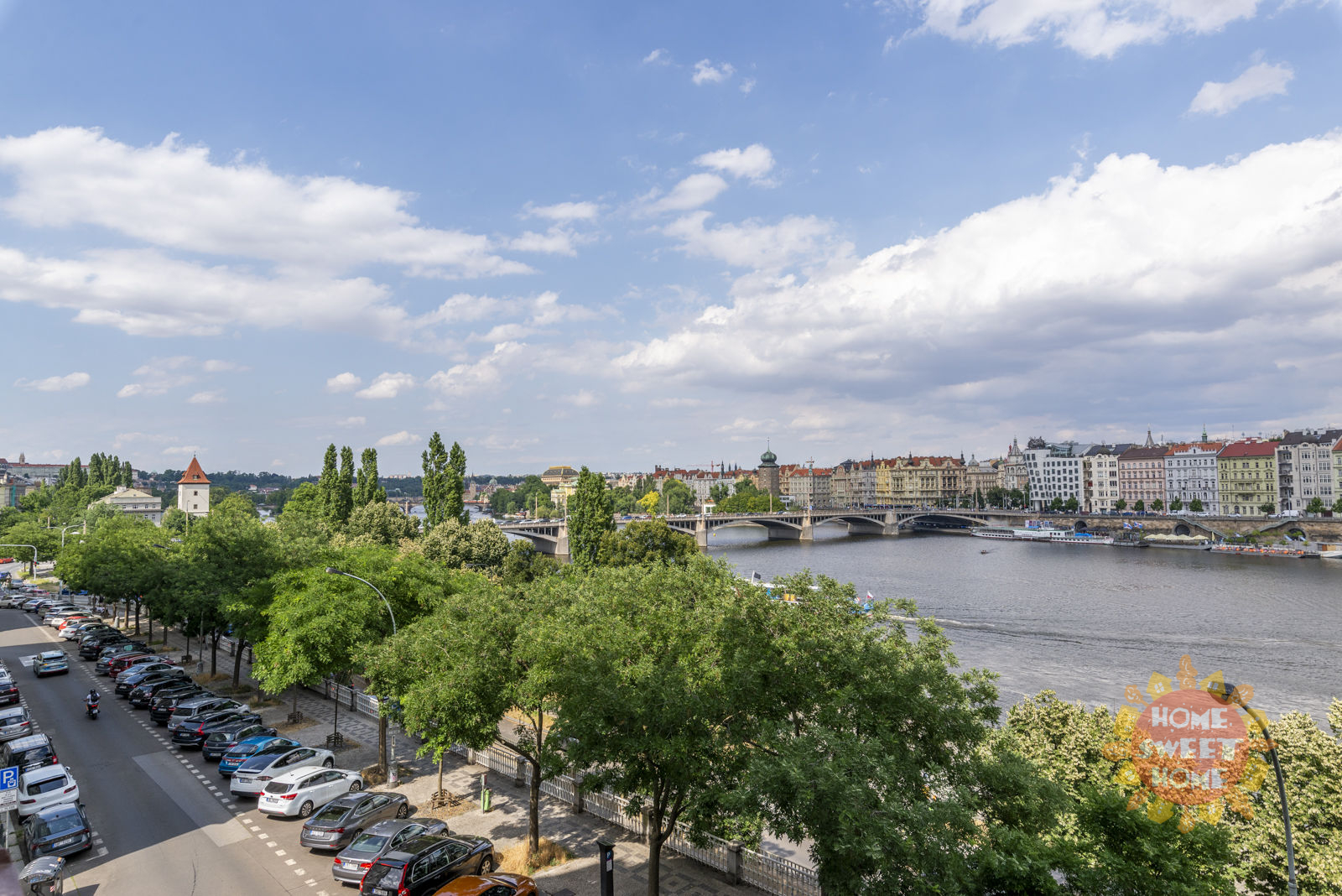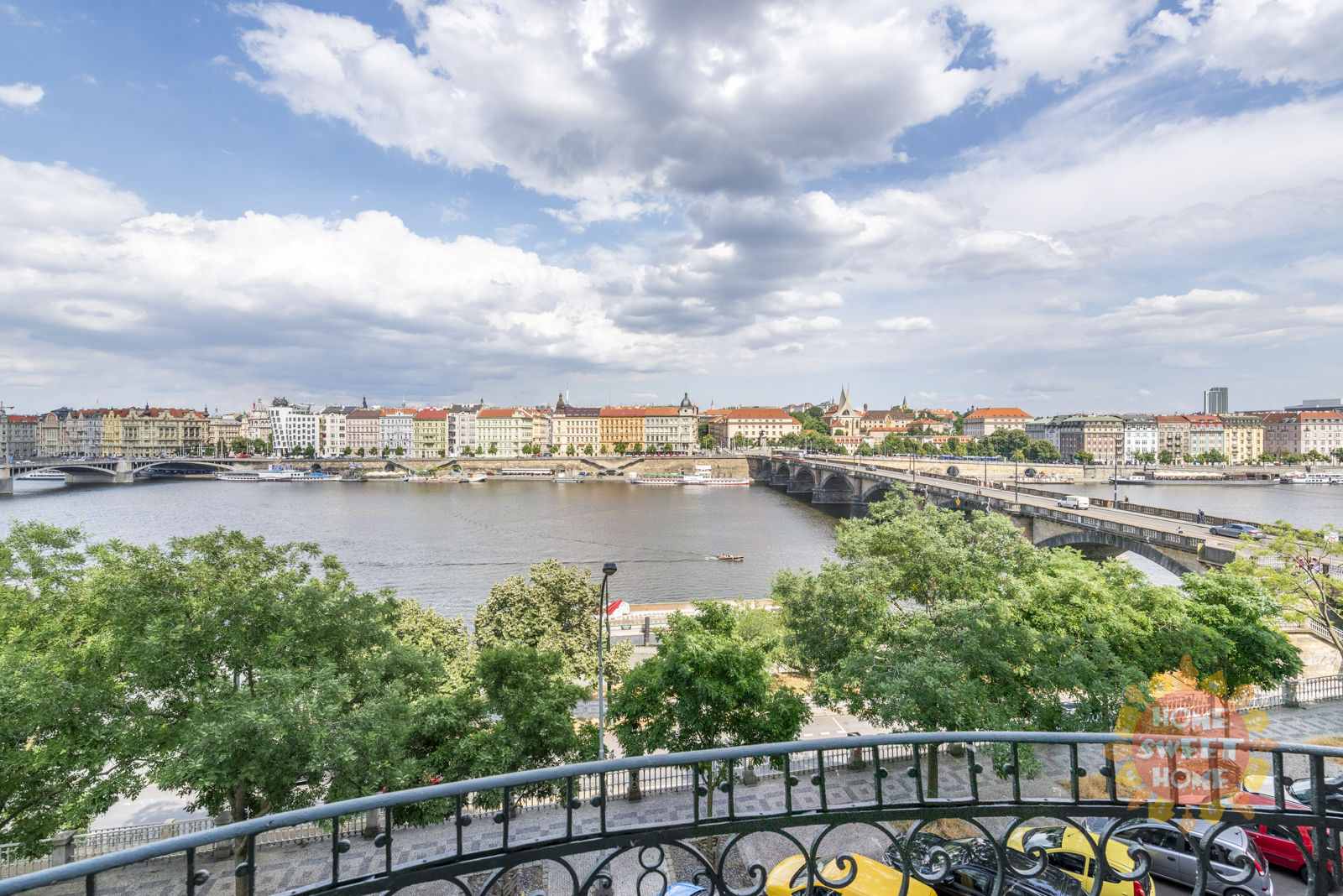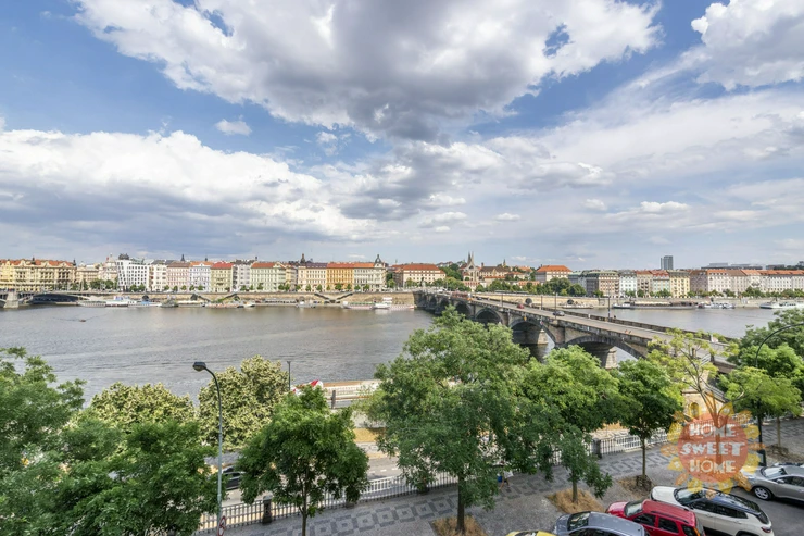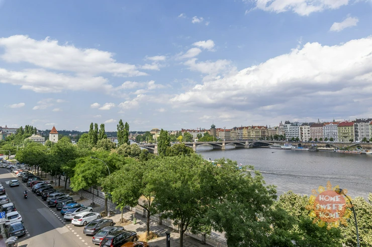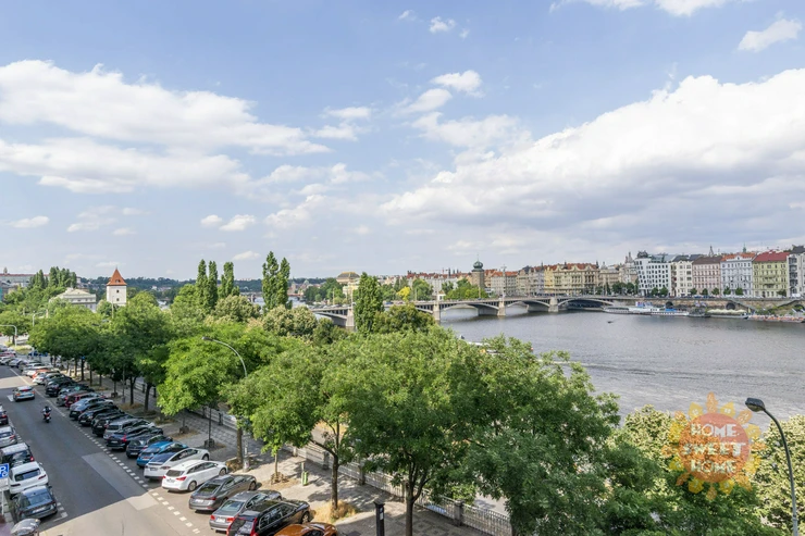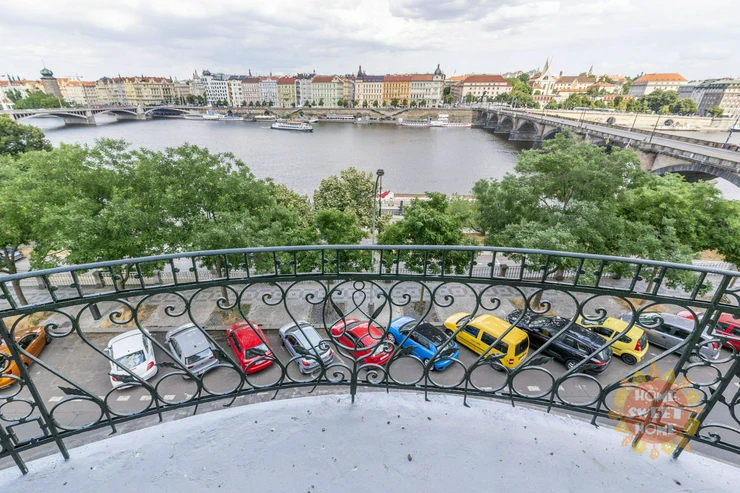 The total area of the apartment, including two balconies, is 143 sqm. Quiet and sunny apartment with a magical view of the beauties of Prague (Dancing House, the Vltava River or the National Theatre)