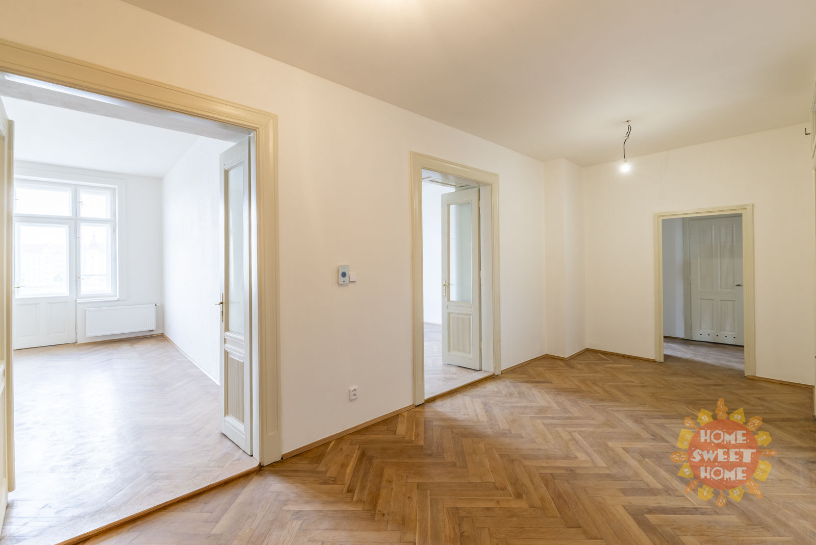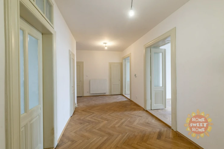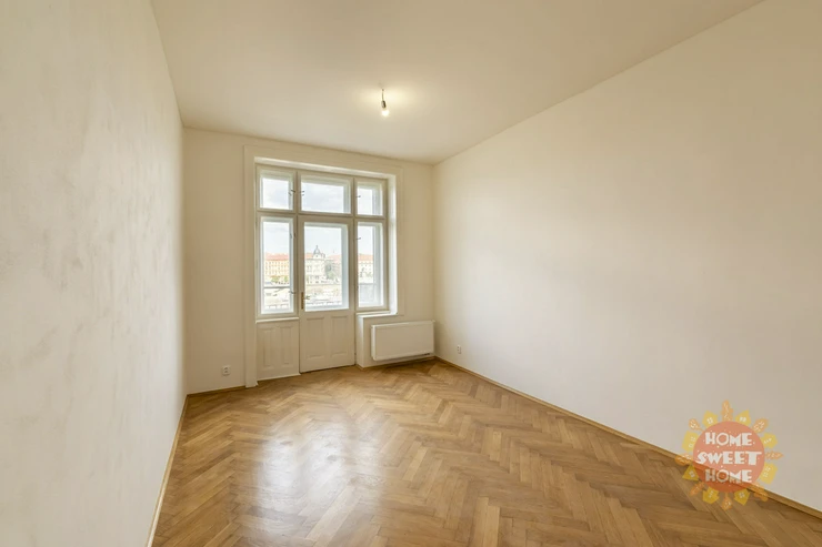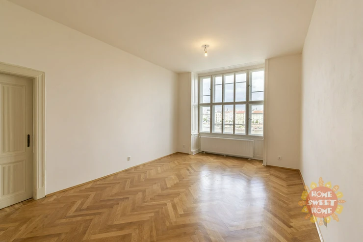 We offer for rent a unique unfurnished apartment 4+1 after complete reconstruction, which was completed in 2024. The stylish, spacious apartment is located on the 4th floor of a nice Art Nouveau house on the bank of the Vltava river, in the street Janáčkovo nábřeží. The house was inhabited for many years by the well-known Czech actor Oldřich Nový.