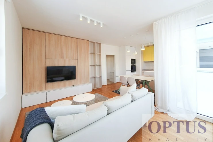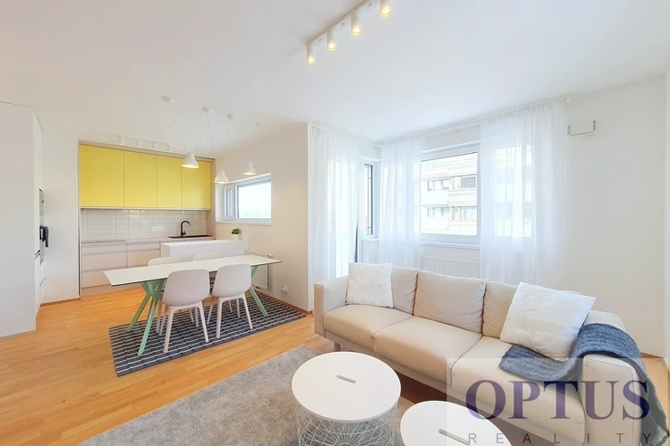 Modern designer furnished apartment size 2 + kitchen corner (in area of 56.4 m2) + balcony of 4.75 m2 - west orientation; situated on the 4th floor with lift in a new residential building – part of residential complex Botanica.