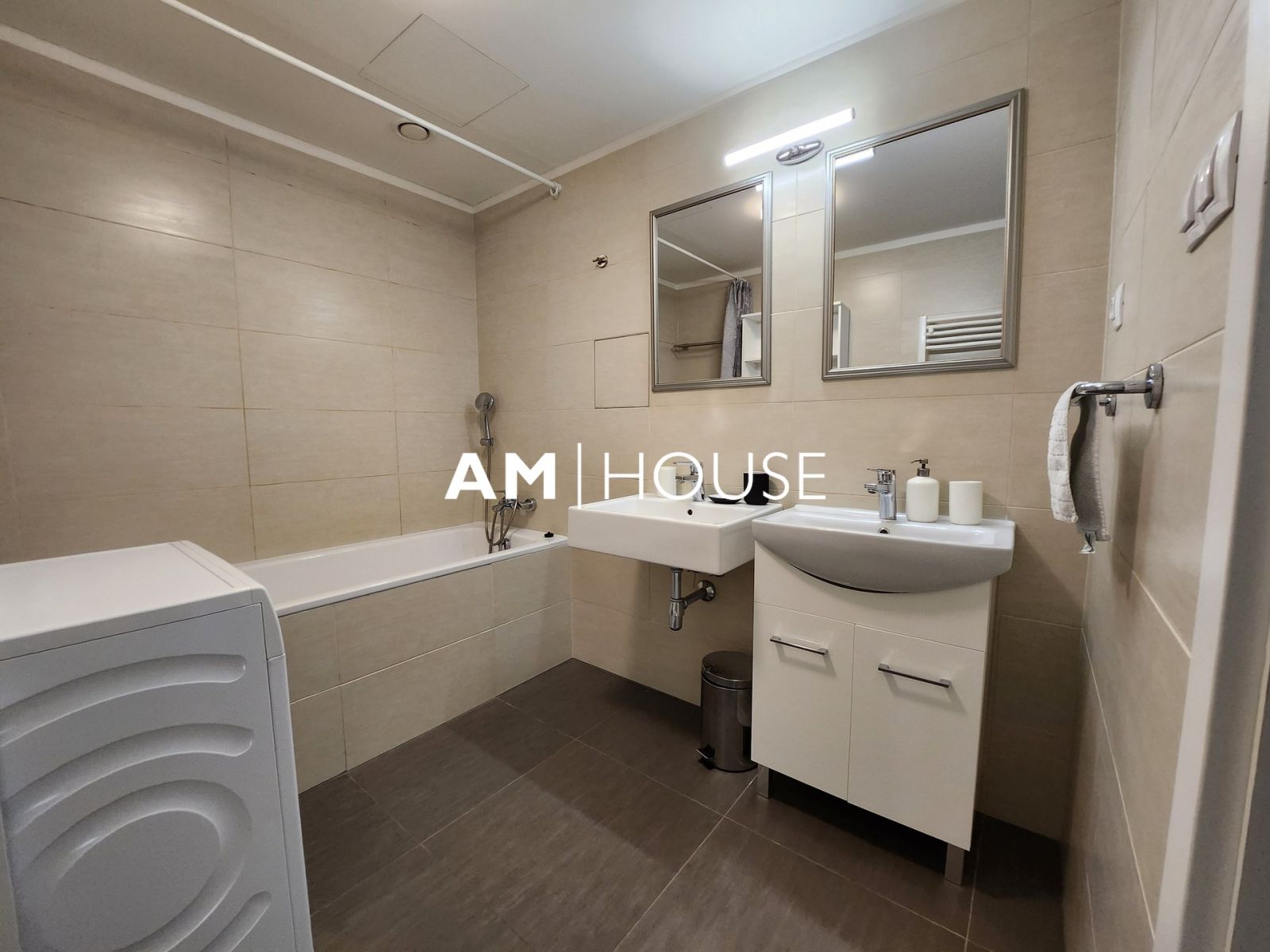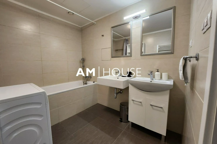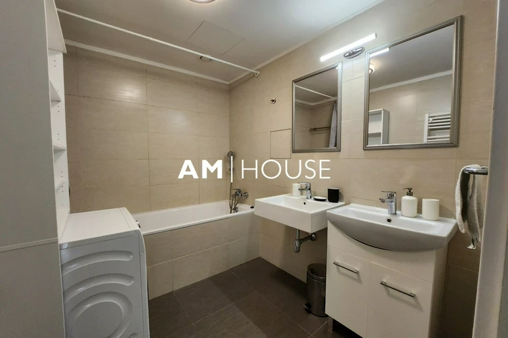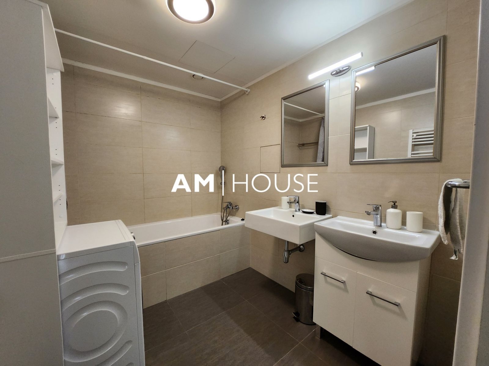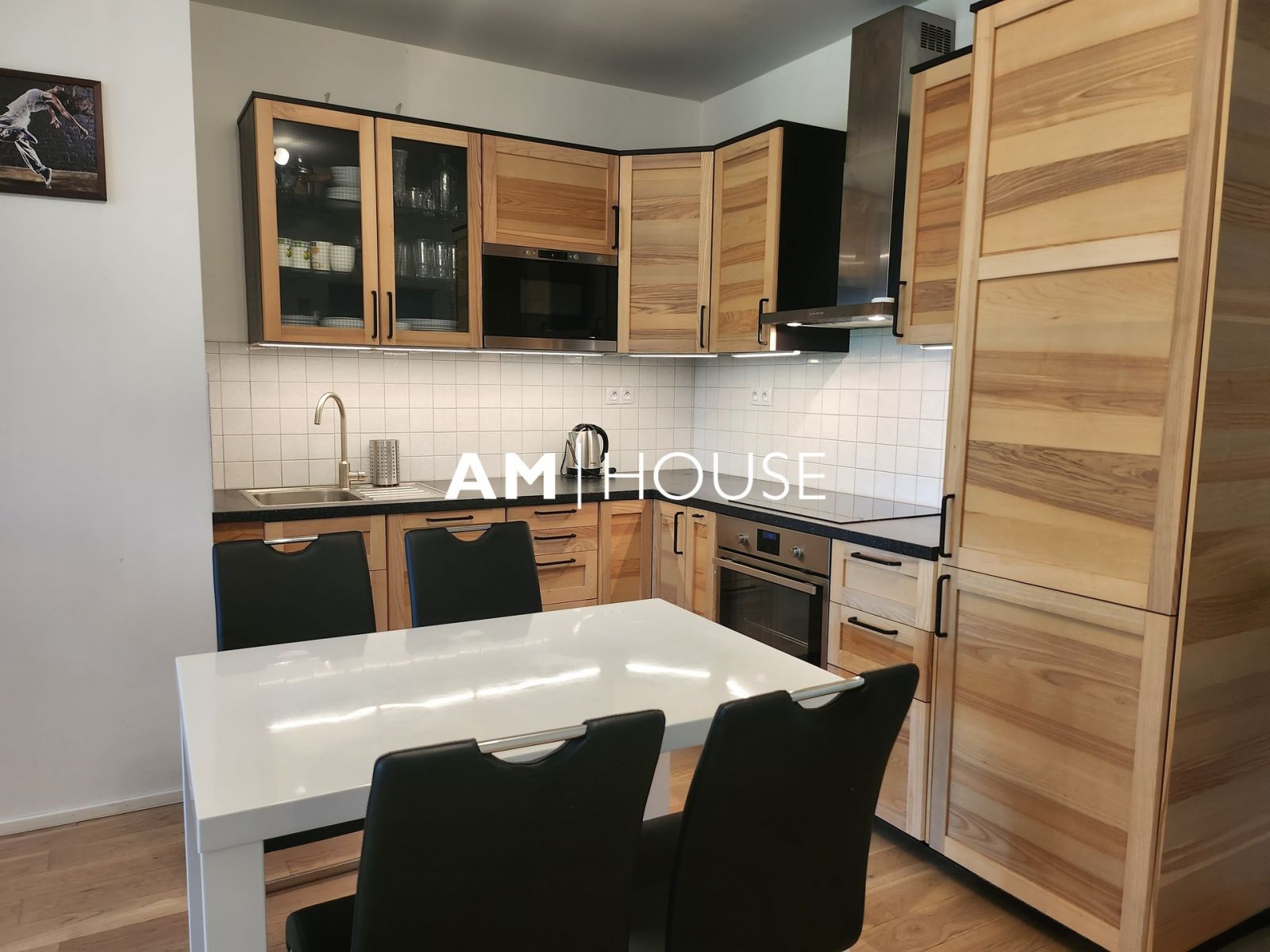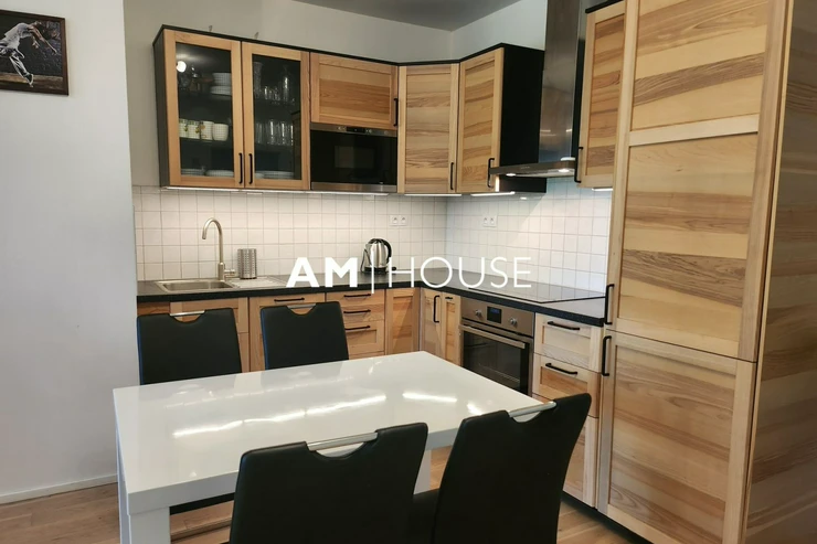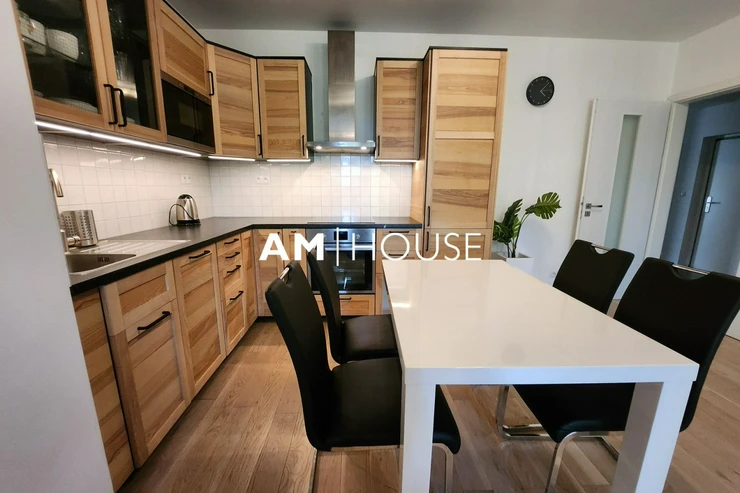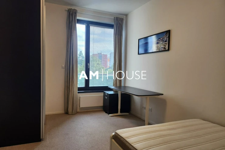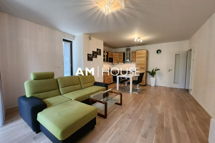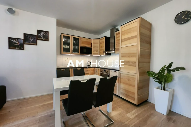 Beautiful apartment 3+kk, with a total area of 83 m2, in 3. the above-ground floor of a new building with an elevator in Strašnice in Prague 10. The apartment is rented furnished. Kitchen with appliances (fridge, oven, hob, extractor hood, microwave, dishwasher) is located in the corner of the living room. The bathroom has a bathtub, 2 sinks and a ladder radiator. The layout of the apartment also offers a separate toilet with its own sink. The big advantage of this apartment brings two spacious and covered balconies on which you can comfortably fit balcony furniture.