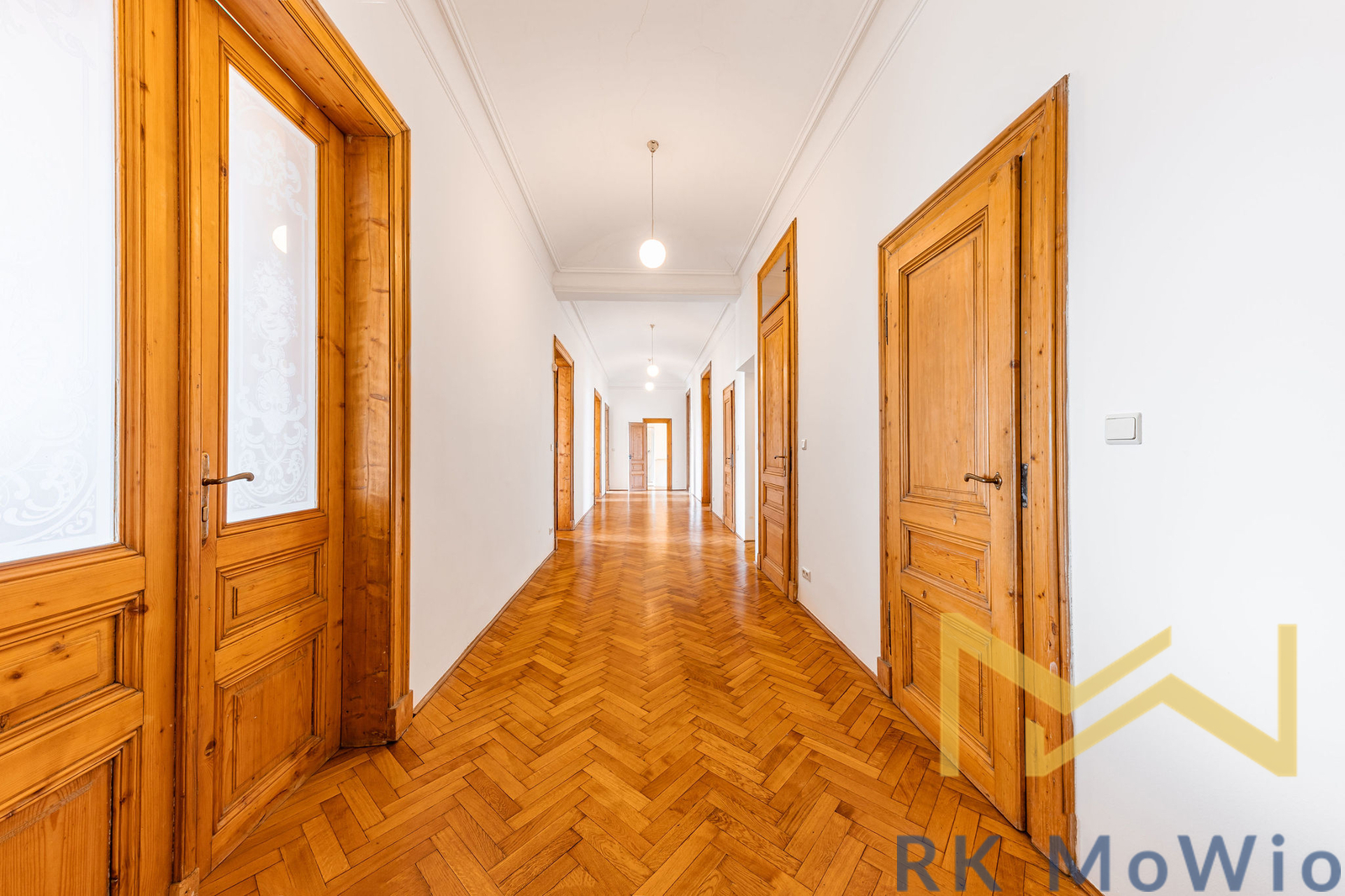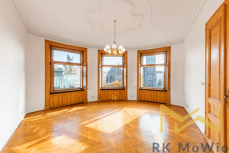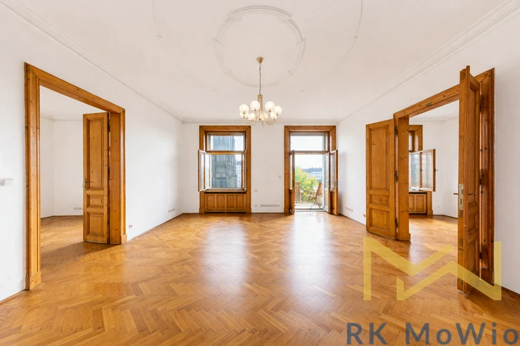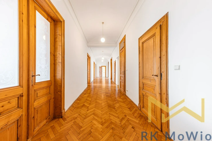 We offer for rent a representative, bright unfurnished 5-bedroom apartment with a total floor area of 255 sqm and a balcony, situated on the 4th floor (5th above-ground floor) of a renovated historic building with an elevator in a prestigious location of Prague 2 – Vinohrady, Ibsenova street. The apartment offers spacious and airy living with the atmosphere of classic Prague architecture.