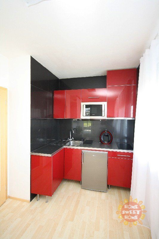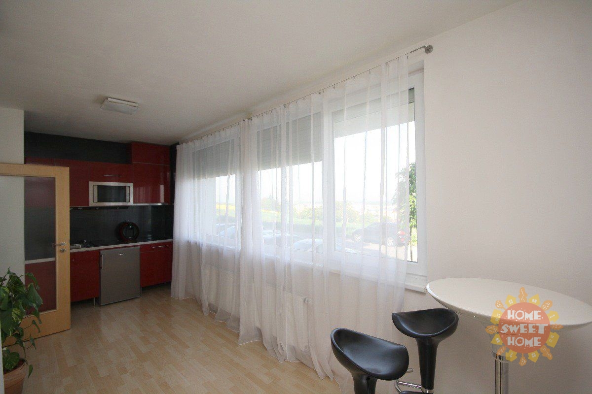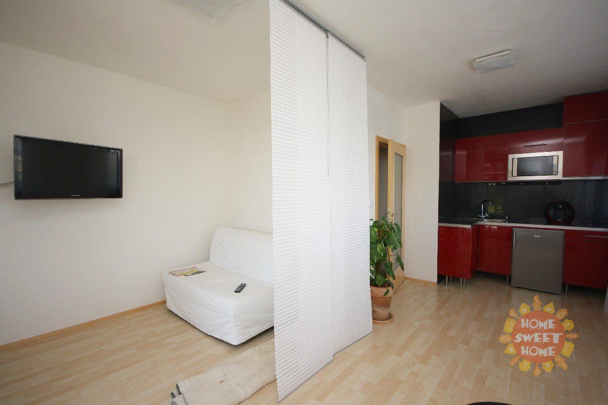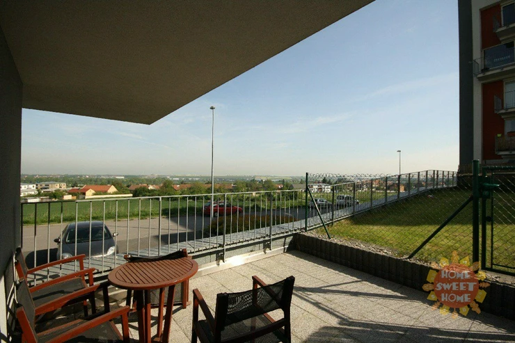 Beautiful partially furnished corner apartment 1+kk with a total area of 43 m2 with terrace (15 m2), cellar is located on the ground floor of new building in Prague 5 - Zličín. The apartment is oriented to the north and east with morning sun. The apartment has a brand new stylish kitchen with ceramic touch hob, microwave with grill, refrigerator, sink, cooker hood and washing machine. Bathroom with shower, toilet separately. Central heating is adjustable. On the floors are floating floors (walnut) and tiles. The room is equipped with bed, LED TV, garden furniture and outdoor remote controlled blinds. Outside the front door opening home phone from the apartment. The house is situated in a quiet location with a beautiful view of the landing area of the airport. There are good amenities - restaurants, sports hall (tennis), OC Metropole Zličín, ATMs, kindergarten, elementary school. I accessibility metro " B" Zličín to 10 minutes.