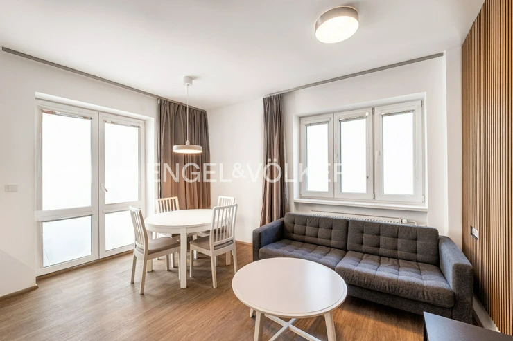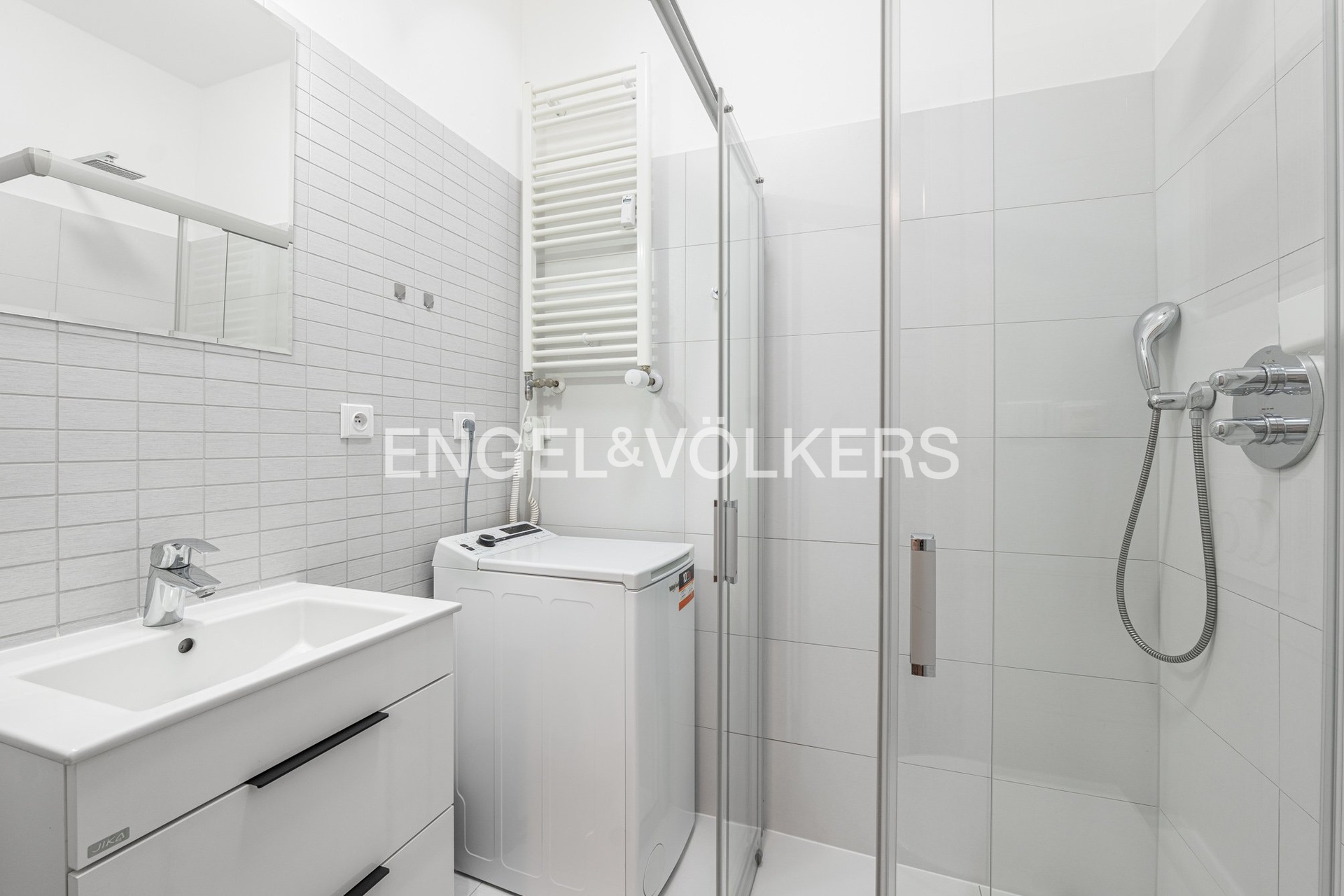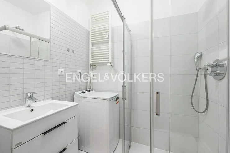 The apartment is located in an attractive part of Smíchov, just a few minutes from the Klamovka tram stop, which is only two stops away from the Anděl metro station and the Nový Smíchov center. In the vicinity, you will find restaurants, cafes, and shops; nearby are the Kinský Garden and Klamovka Park, ideal for walks and relaxation.
