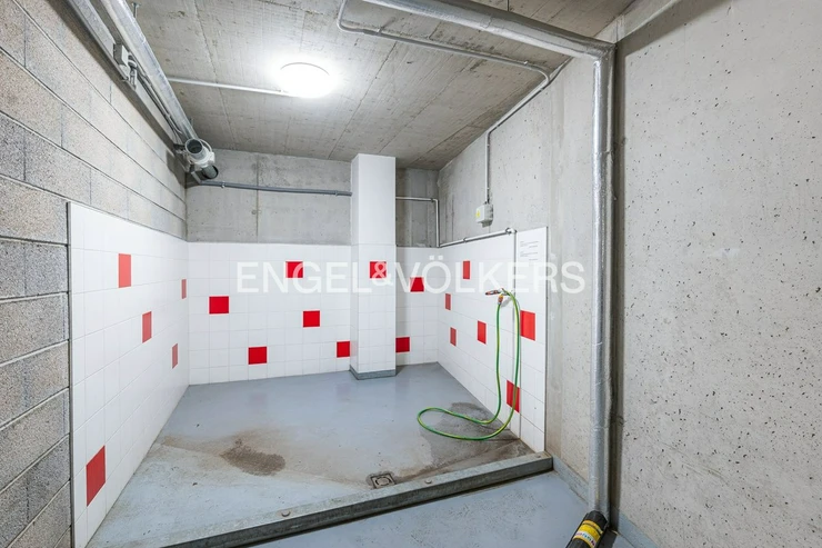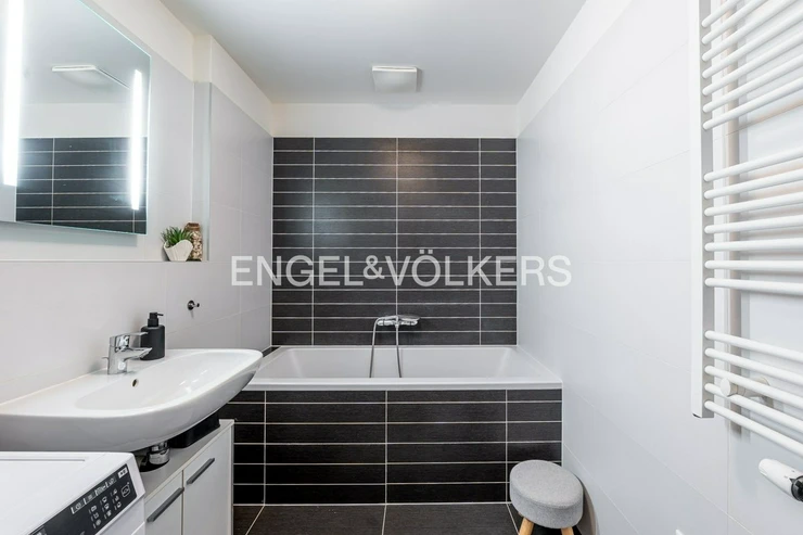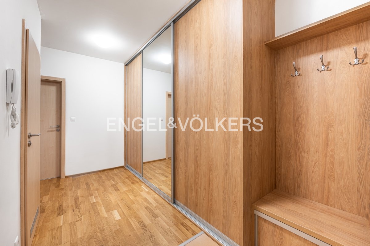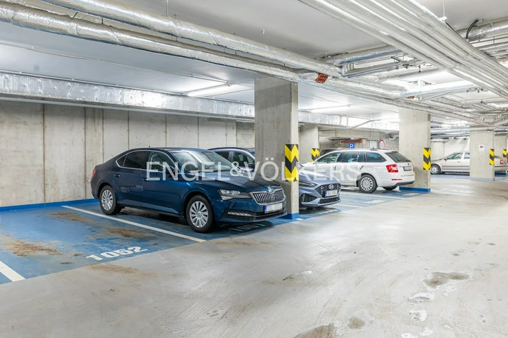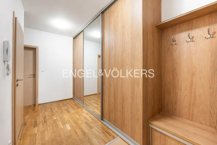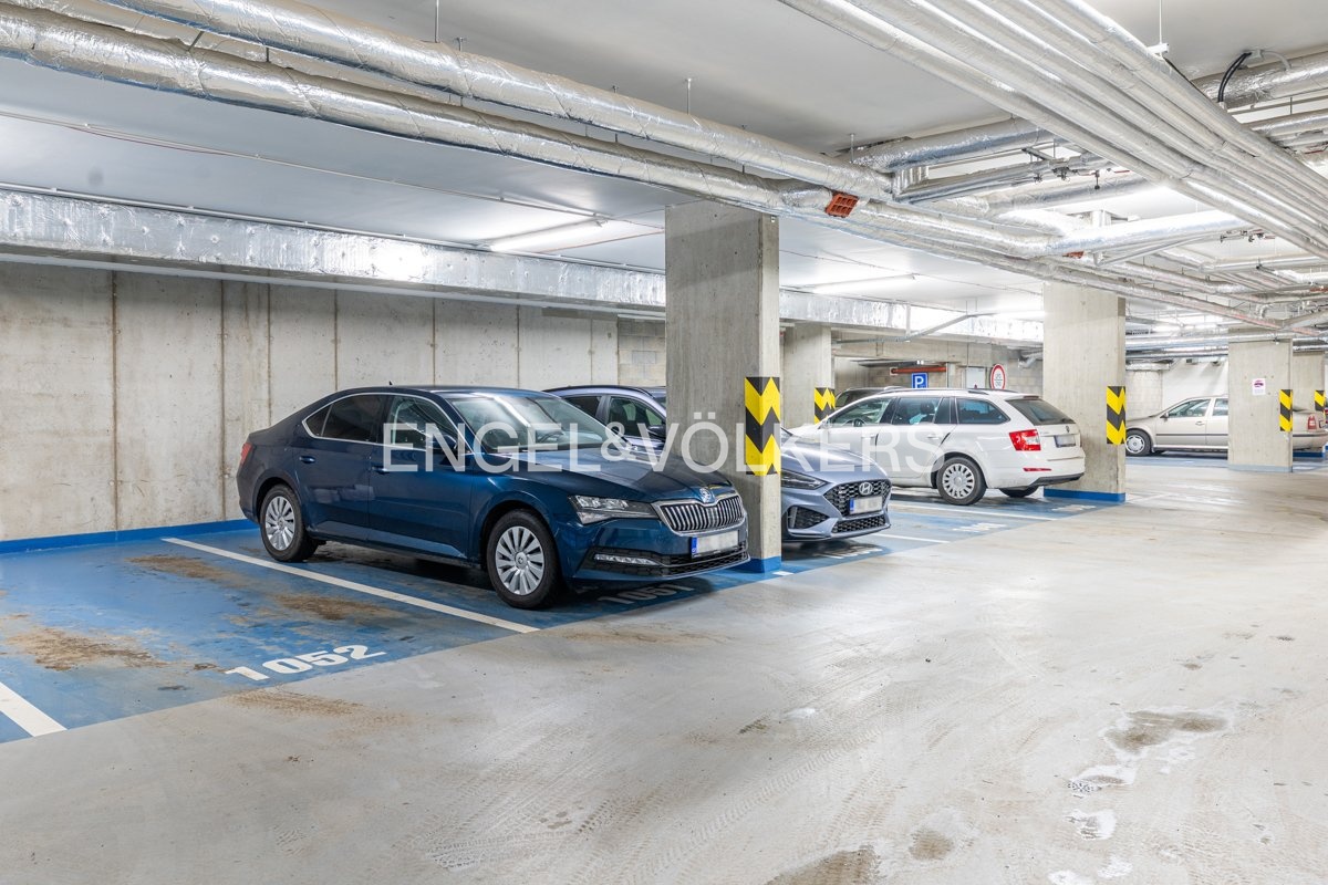 Possibility of a garage parking space for 2,000 CZK per month. The building is a modern new construction, and the surroundings are quiet with plenty of greenery.