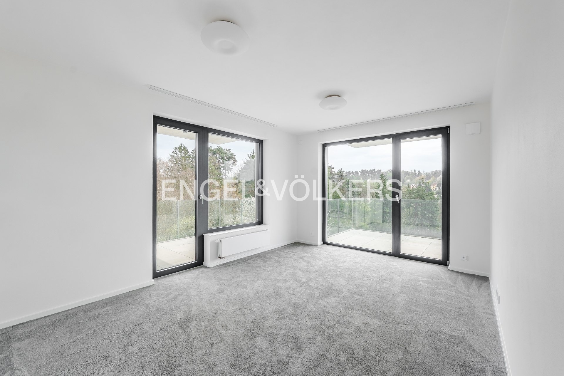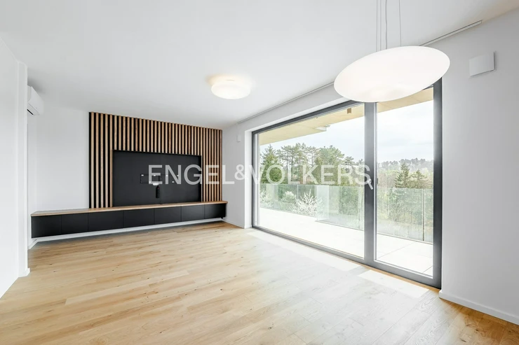 We are offering a brand new 3+kt apartment with a usable area of 92.62 m² for rent, located on the top floor of the modern U Lesoparku development project.