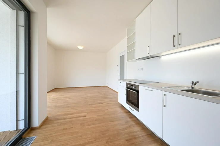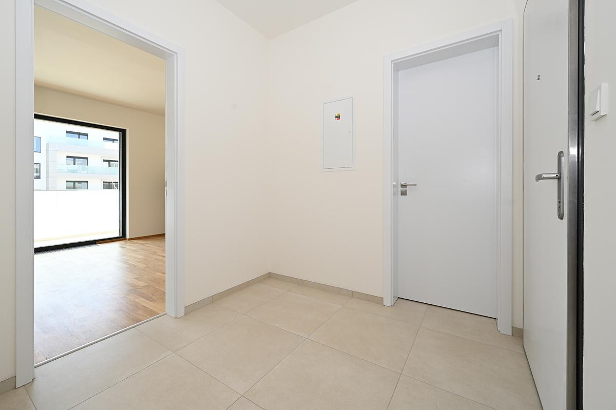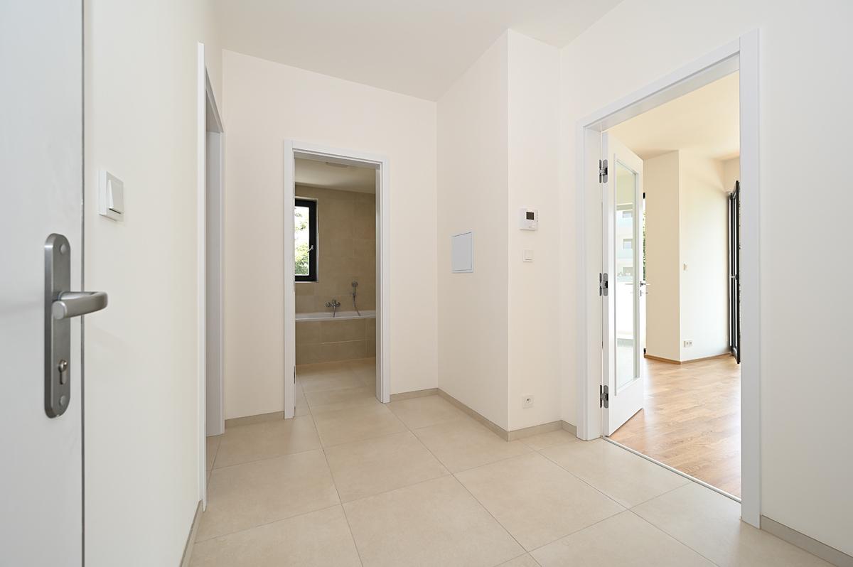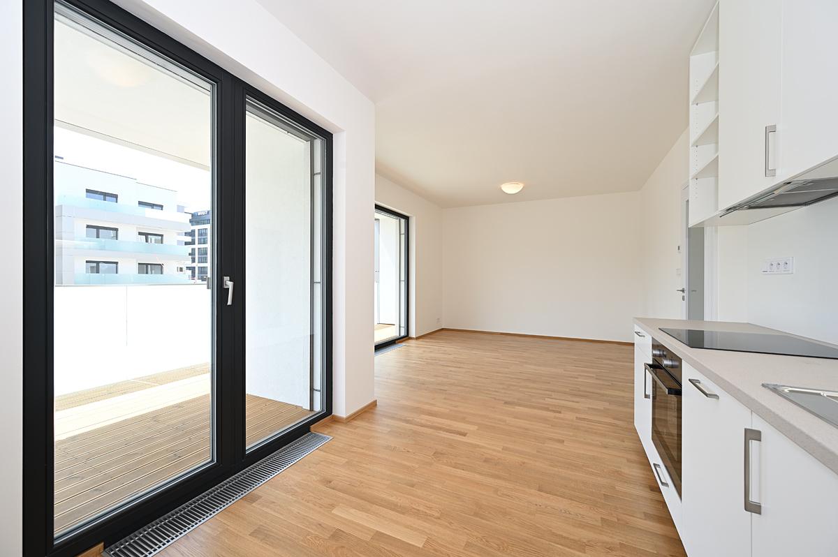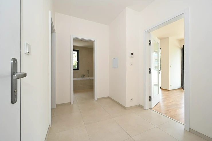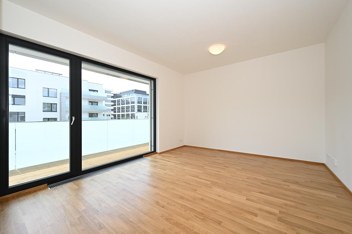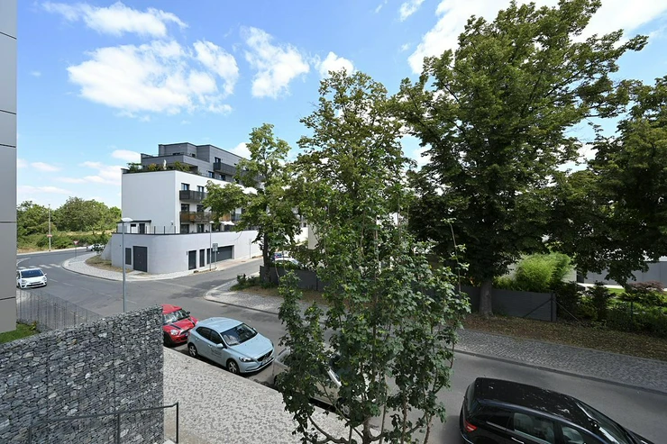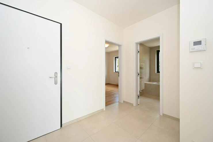 Rent of a modern quiet apartment 2+kk 58 m2 with southeast orientation, south covered terrace 12 m2, east facing bedroom, all accessible from the central hall. Likewise the bathroom with separate toilet.