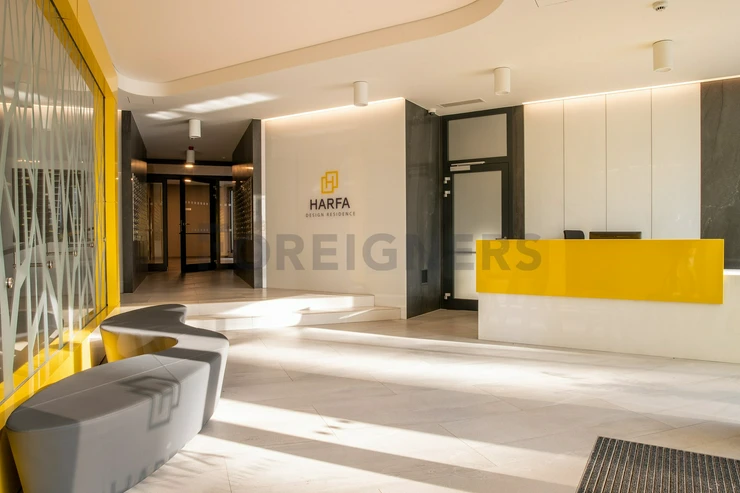 Harfa Design Residence welcomes you with open arms and offers luxury interiors with shiny chrome features and refreshing yellow accents on the fasade.English speaking reception ensures a high level of service as well as perfect security.