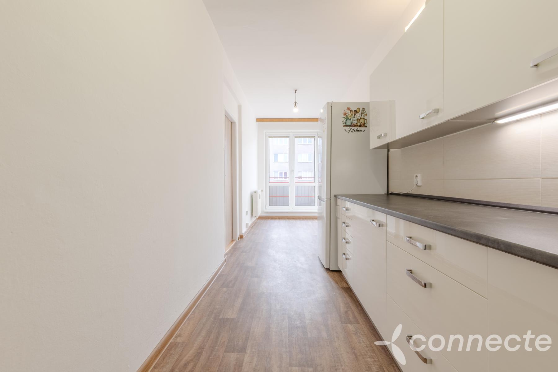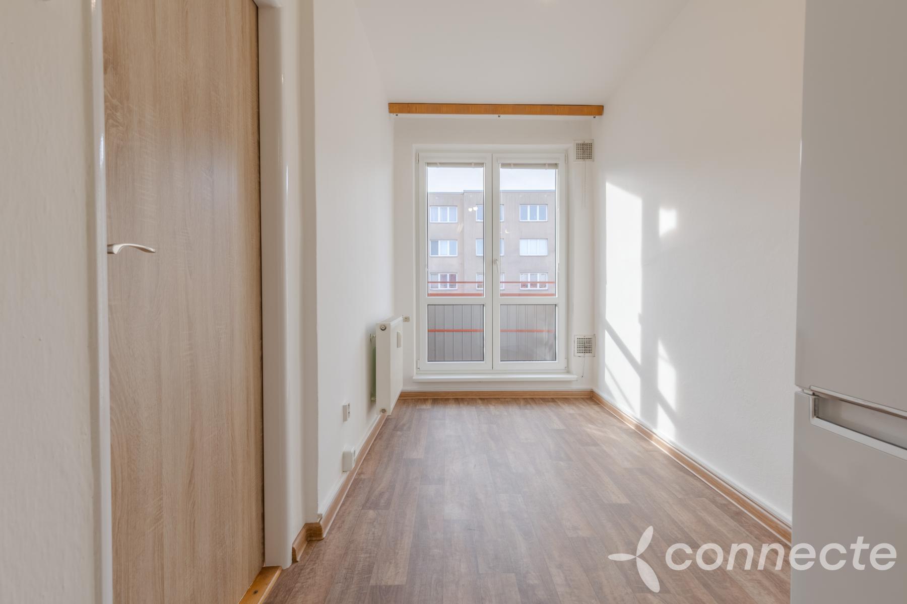 The flat also includes a balcony and a cellar. It is let unfurnished and is suitable both for a family and for shared living.