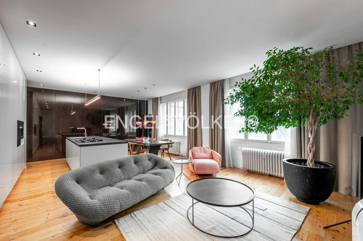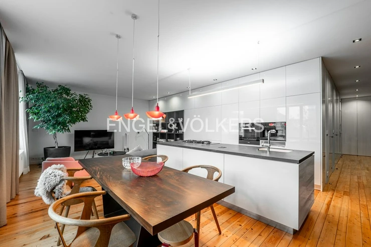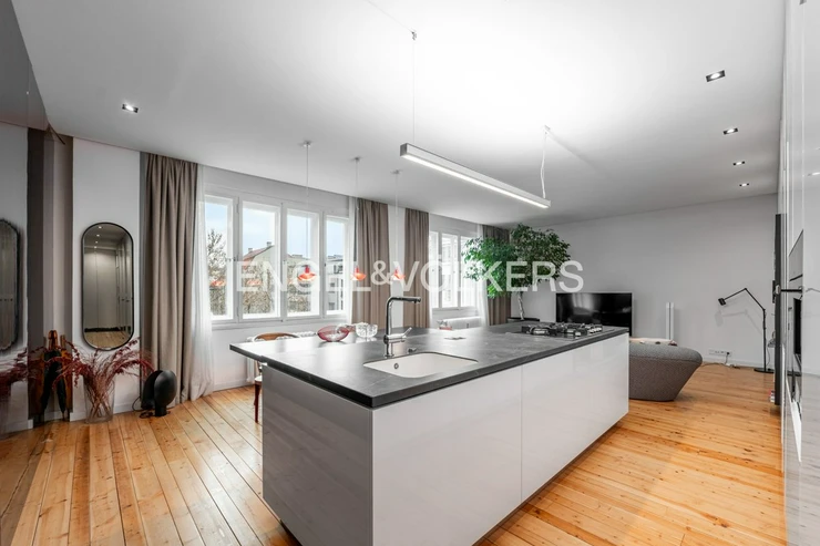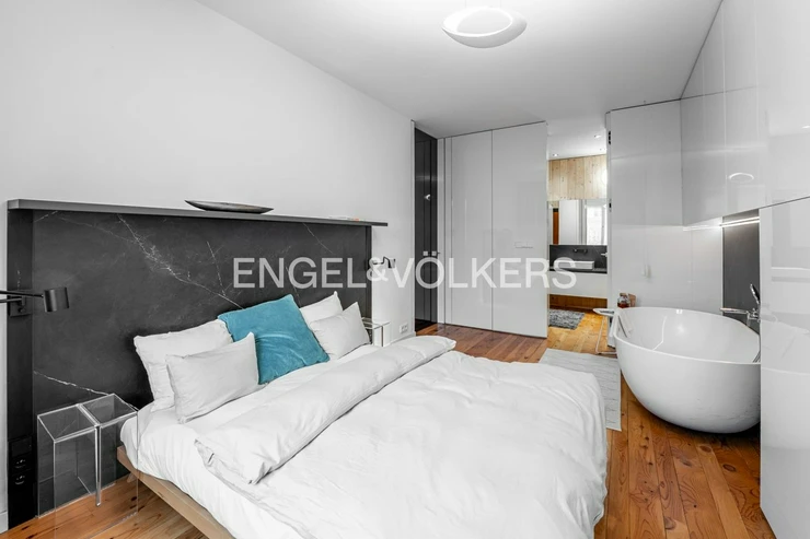 The apartment’s interior is designed with an emphasis on quality, design, and maximum comfort. The apartment is fully equipped with high-quality appliances and stylish furniture that enhance its modern character. The centrepiece is a spacious living room with a kitchenette, offering the ideal space for both daily living and entertaining. The apartment features two bedrooms.