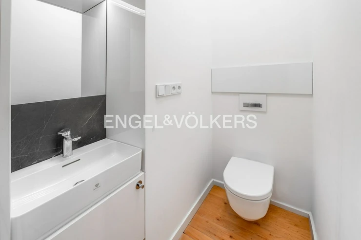 Another advantage is the small balcony facing a quiet courtyard, which provides pleasant privacy in the heart of the city centre. The apartment features above-standard amenities - a total of three toilets, two shower stalls, and one bathtub - ensuring maximum comfort even for a larger household.