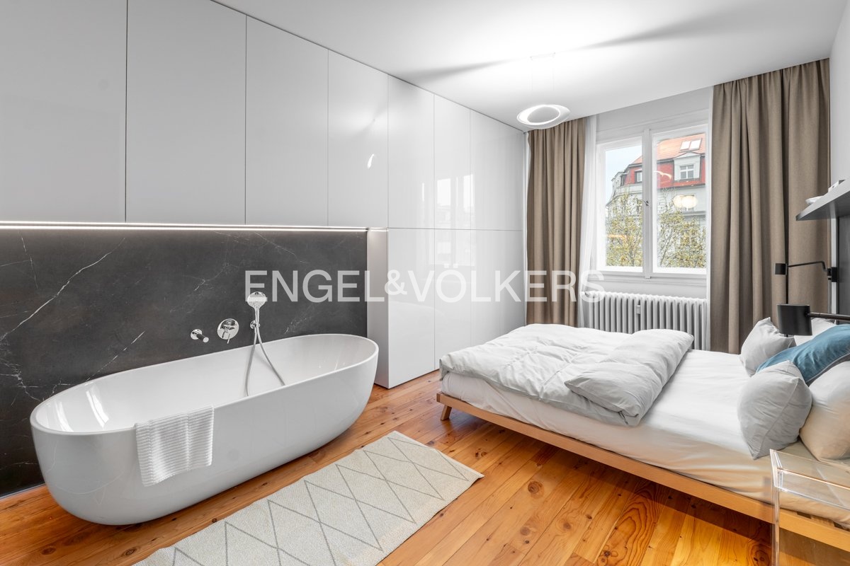 Rent an exclusive, modernly furnished 3+kt apartment on the 3rd floor (with elevator) in the prestigious Nové Město neighbourhood of Prague 1, on Lodecká Street.