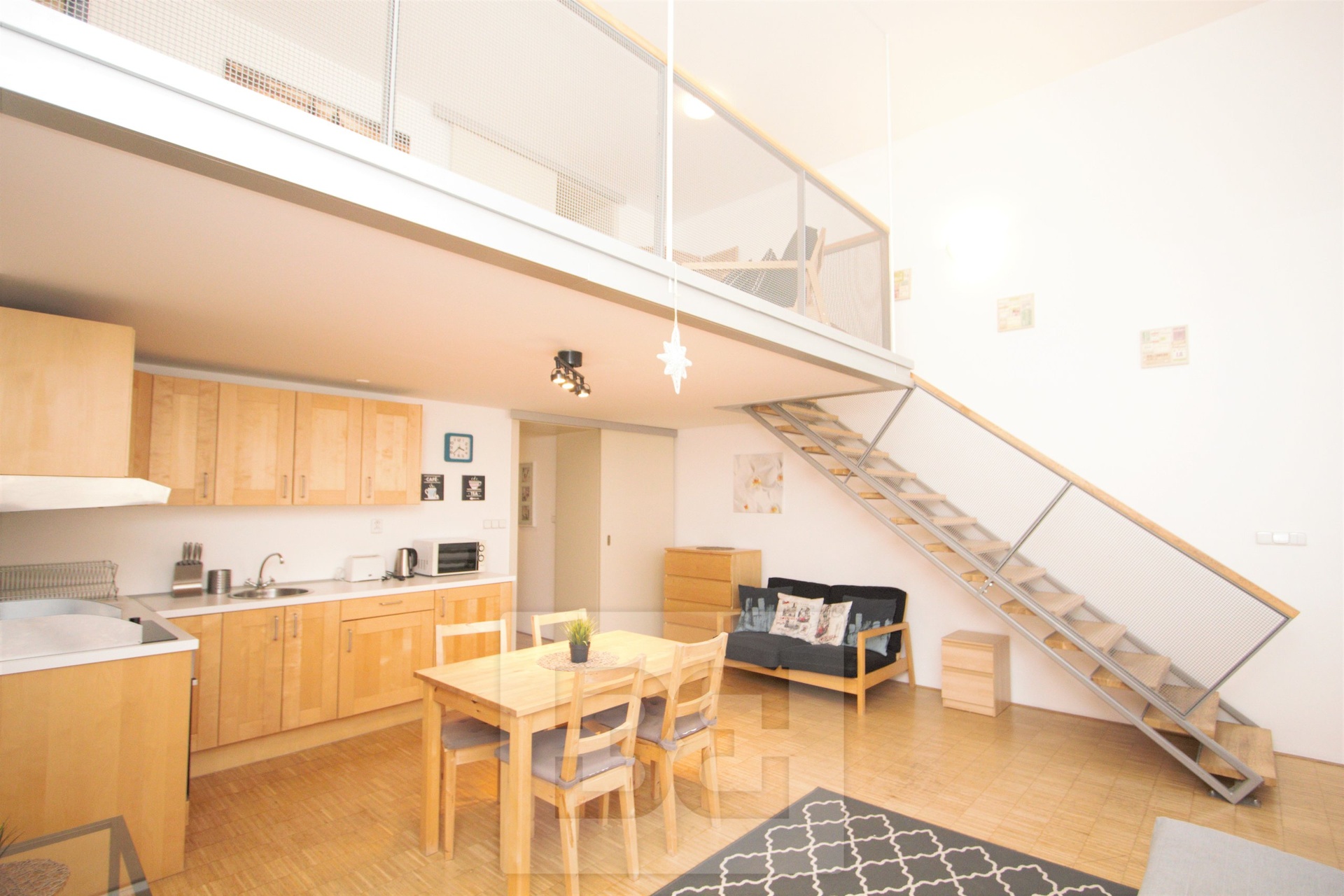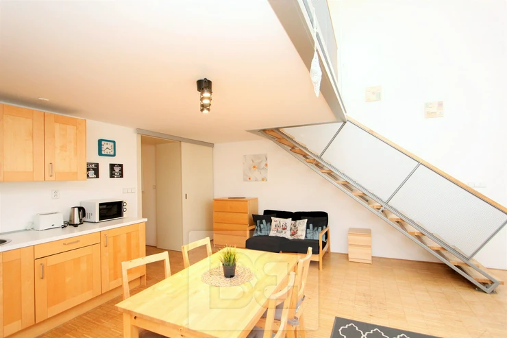 We offer for rent a beautiful loft-style 2+kk apartment with a total area of 60 m², located on the 4th floor of a well-maintained building.