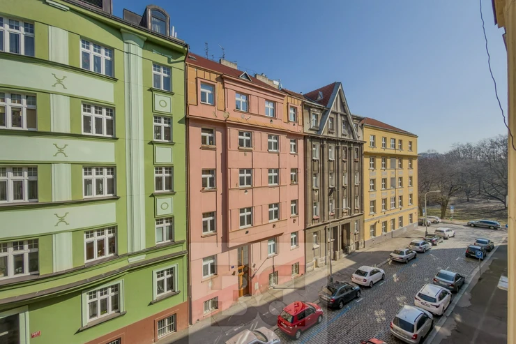 The apartment overlooks a quiet one-way street. Pleasant living near Jezerka Park with the well-known Na Jezerce Theatre. The surrounding area offers full amenities including shops, services, restaurants, and cafés.