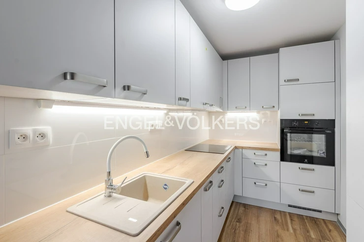 The layout consists of a spacious living room with a kitchenette and two separate bedrooms. The apartment recently underwent a complete and very successful renovation. The bathroom is premium-equipped with a bathtub, a shower, and a toilet. The apartment is offered unfurnished, giving future tenants the opportunity to furnish the interior exactly to their liking. The apartment includes a wooden cellar cubicle in the basement. Residents also have access to a practical stroller room in the building. The building is fully insulated as part of a total renovation.