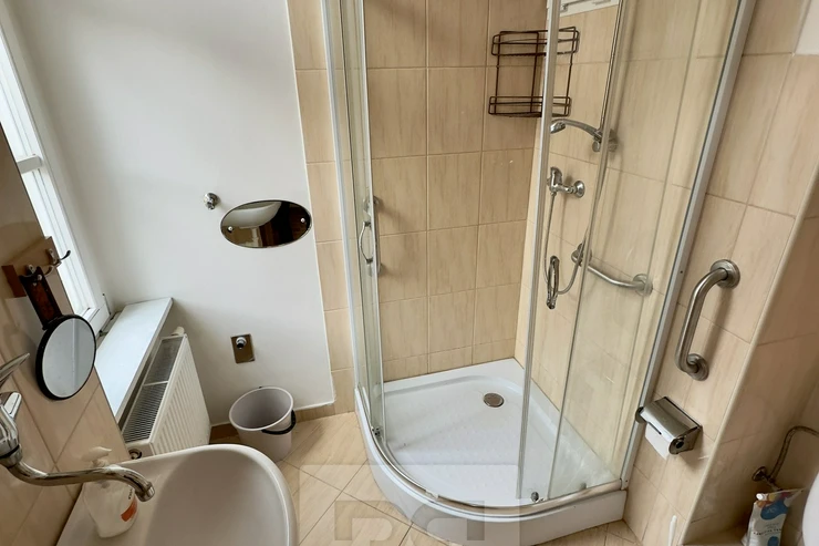 We offer you for rent an apartment located on the fourth floor of a building without an elevator - Petřínská Street. Before entering the apartment there is a common hallway for two apartments, there is a shoe rack with a hanger. The apartment consists of a room with a kitchenette equipped with a gas stove, electric oven and fridge with freezer, a bathroom with a shower and toilet and another spacious room. The windows are oriented to a quiet courtyard. Water heating and heating with a gas boiler.