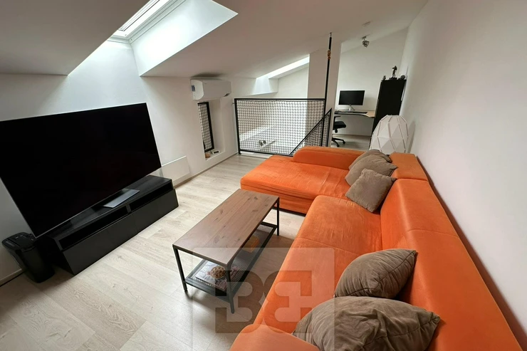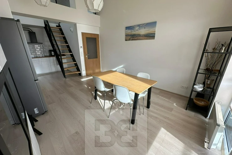 We offer for long-term rent a 3-room apartment with kitchenette (3+kk) with a floor area of 72 m², located in a well-maintained and insulated building from 2019, featuring an attractive layout with an open upper floor (gallery), situated on the 4th floor with an elevator.