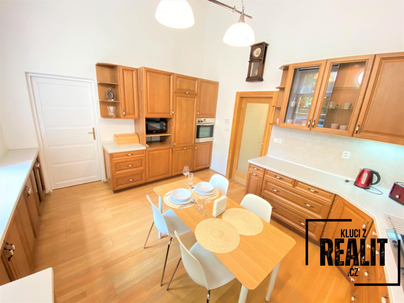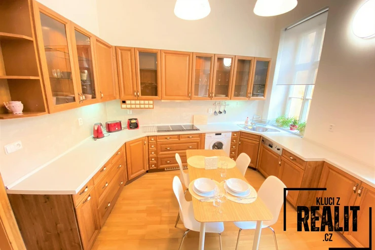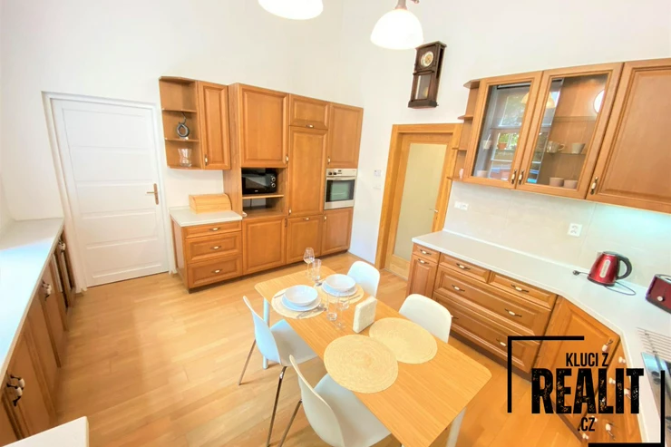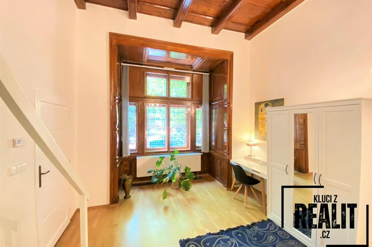 For long-term rent we offer a spacious, fully furnished apartment with original features, 1+1 layout and an area of 49 m2, located on the 2nd floor of a historic house with an elevator in the prestigious location of Malá Strana, on Újezd Street.