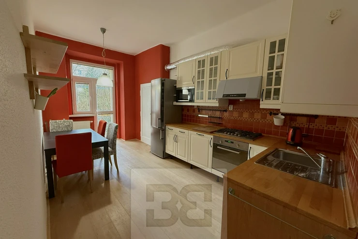 We are offering for rent a beautiful, practically designed 3-bedroom apartment (3+1), 98 m² in size, located in a well-maintained residential building. The apartment stands out for its high ceilings and an overall sense of airiness. The building is situated on the quiet street Slovinská, directly opposite Svatopluk Čech Square.