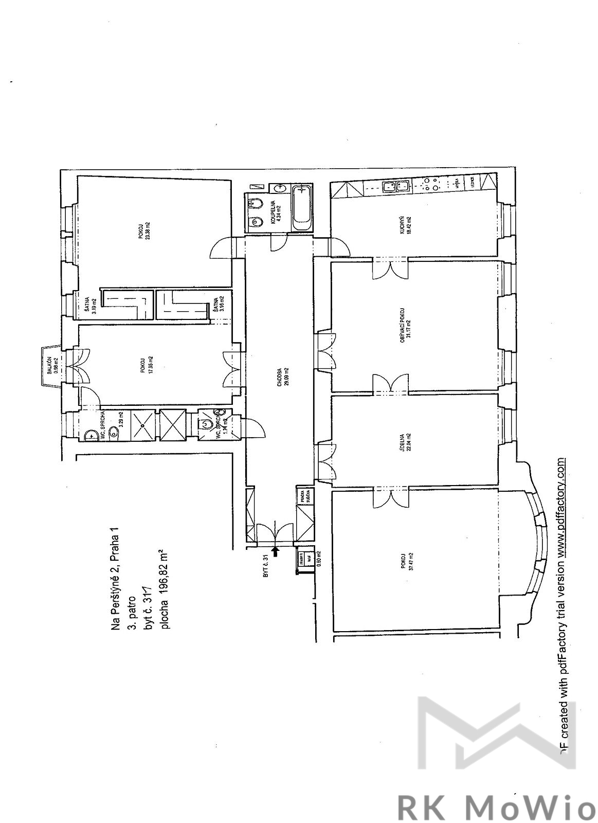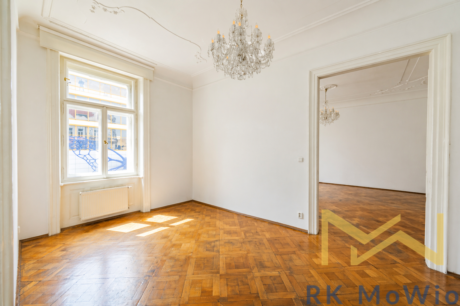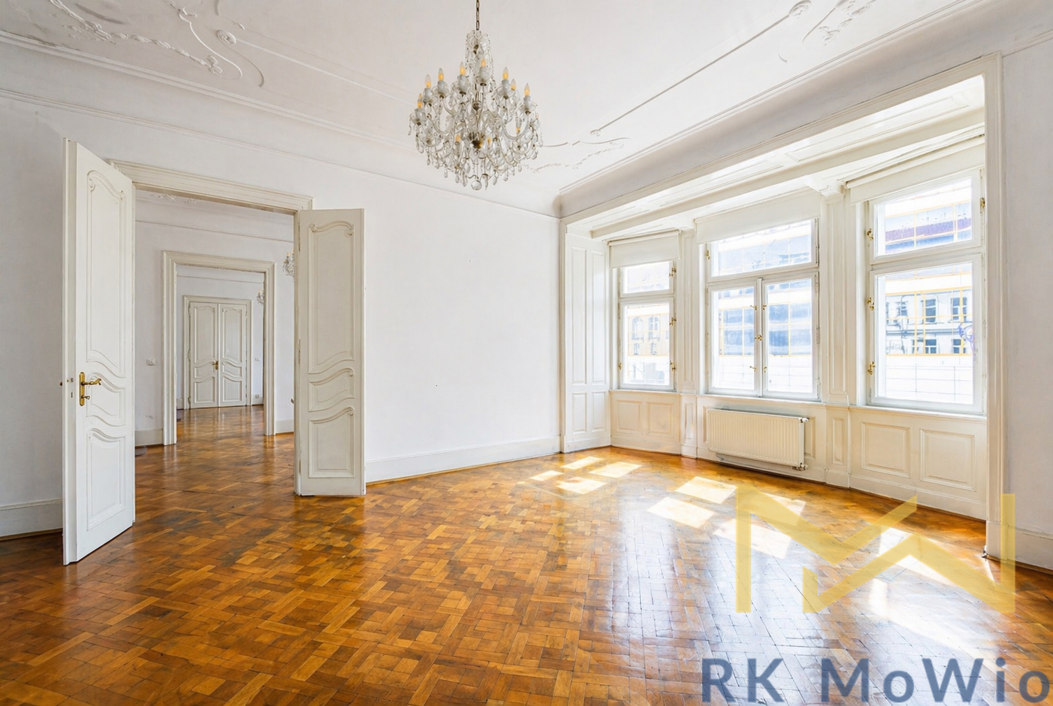 We offer for rent a bright and spacious unfurnished 4-bedroom apartment (5+1) with a total area of 197 sqm and a small balcony, situated on the 3rd floor (4th above-ground floor) of a renovated Art Nouveau building with an elevator in the attractive location of Prague 1 – Nové Město, on Na Perštýně Street. The apartment offers representative living in the very center of Prague with the unique atmosphere of historic architecture and excellent access to all amenities.