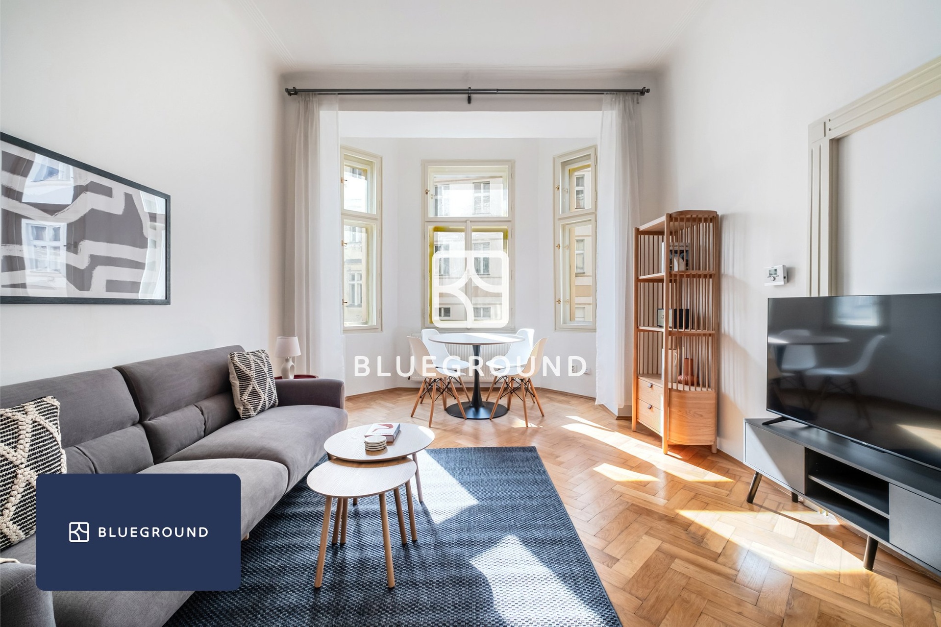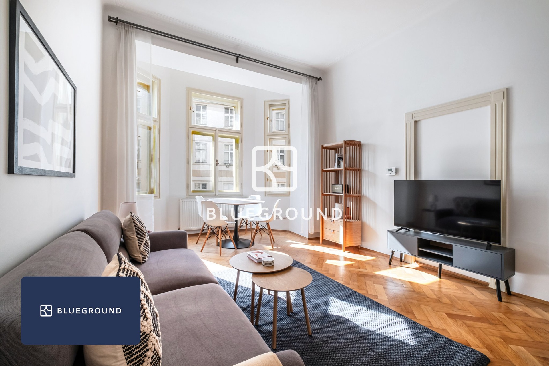 Looking for flexible living? Blueground offers fully furnished and equipped apartments for stays starting from 1 month. This bright 2+kk apartment (49 m²) is located in New Town, Prague 2, just 5 minutes from the popular Náplavka riverfront, one of the city’s most vibrant areas. Recently renovated, the apartment offers modern comfort, plenty of natural light, and a pleasant living environment in the very heart of Prague, with excellent access to culture, dining, and city life.