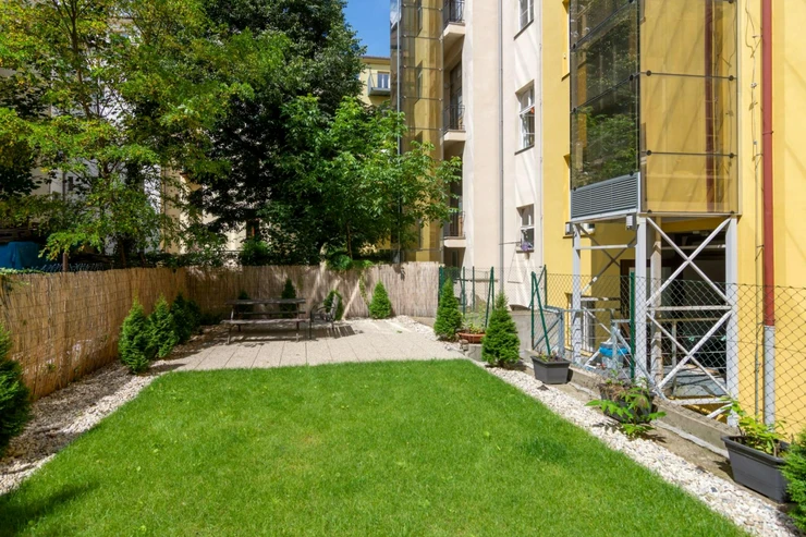 Obyvatelé domu mohou využívat kolárnu a zahradu, o kterou pečuje zahradník. Dům se nachází v klidné, jednosměrné ulici, v žádané rezidenční lokalitě. Představuje ideální polohu v blízkosti Kampy, řeky Vltavy a jejích ostrovů a mnoha parků (Kinského zahrada, Petřínské sady, Kampa atd.), se skvělou dostupností městské dopravy, nejbližší metro Anděl a zastávky tram Švandovo divadlo nebo Újezd, také fungují autobusy anebo přes řeku přívozy. Velice příjemné místo k bydlení vybízející k procházkách, běhu, cyklistice i vodním sportům.