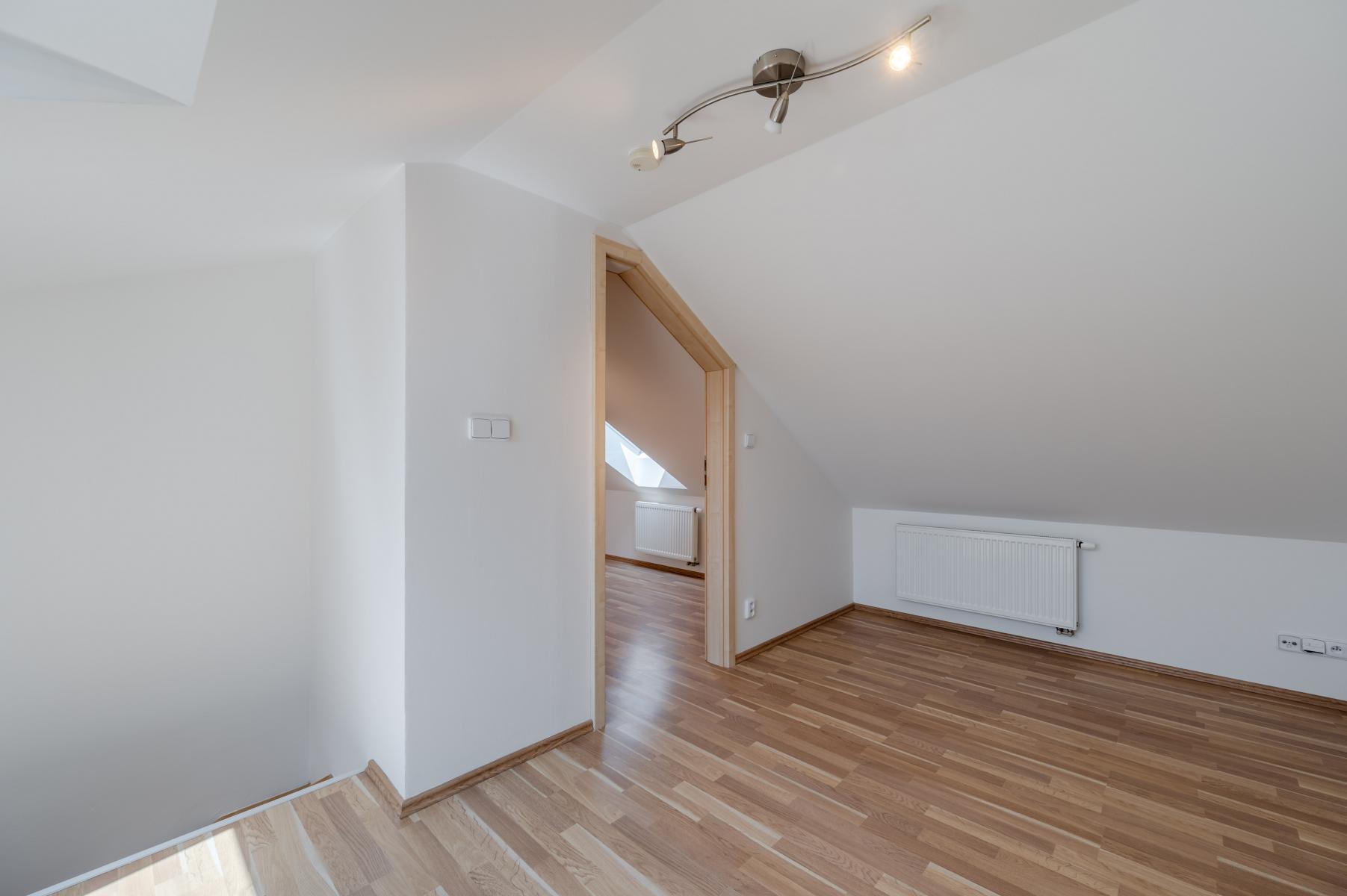 Dům i byt jsou v perfektním stavu, po právě dokončené částečné rekonstrukci. Samotný byt je velkoryse řešený, ve spodní úrovni bytu naleznete obývací pokoj s kuchyňským koutem, chodbu, 2 ložnice, koupelnu, samostatnou toaletu, komoru, v horní části bytu pak třetí ložnici. Kuchyňská linka vybavena spotřebiči. Koupelna s vanou. Bezpečnostní dveře, dřevěné parketové podlahy. Vlastní kotel na ohřev vody a vytápění. Klimatizace Wind Free. Tiché soukromé místo s výhledem na nebe.