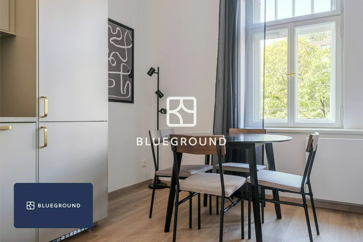 With Blueground, you can move into this fully furnished 2+kk apartment (51 m²) in Prague 5 – Košíře, available from just one month up to a year. Enjoy flexible mid-term living with no long-term commitments and everything ready from day one.