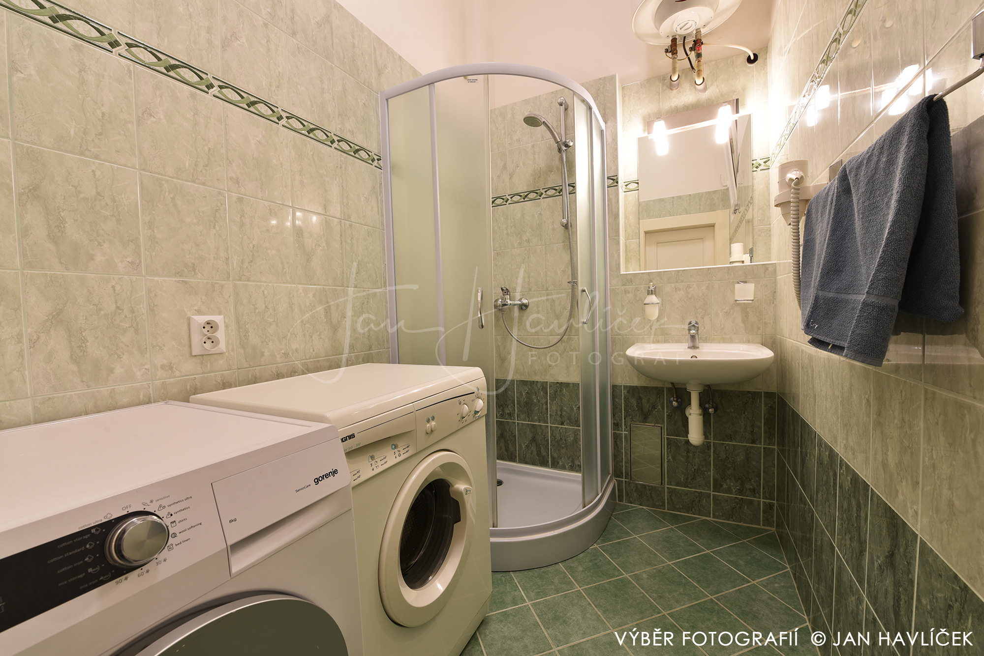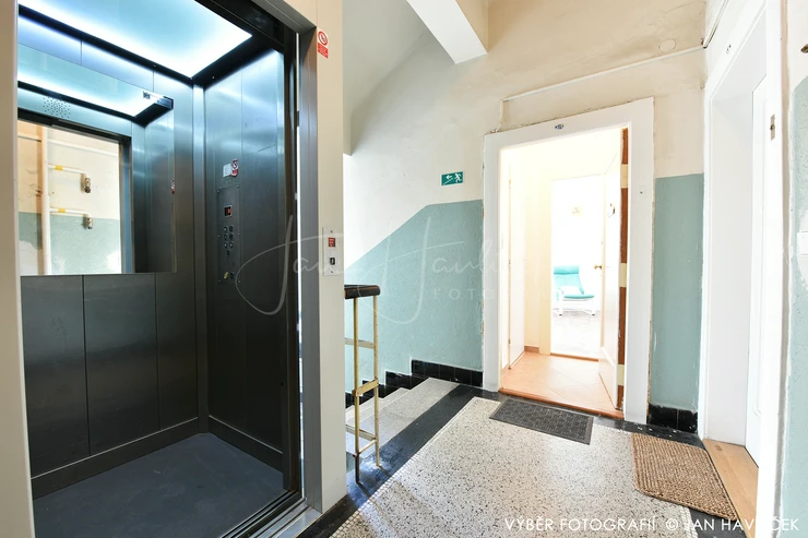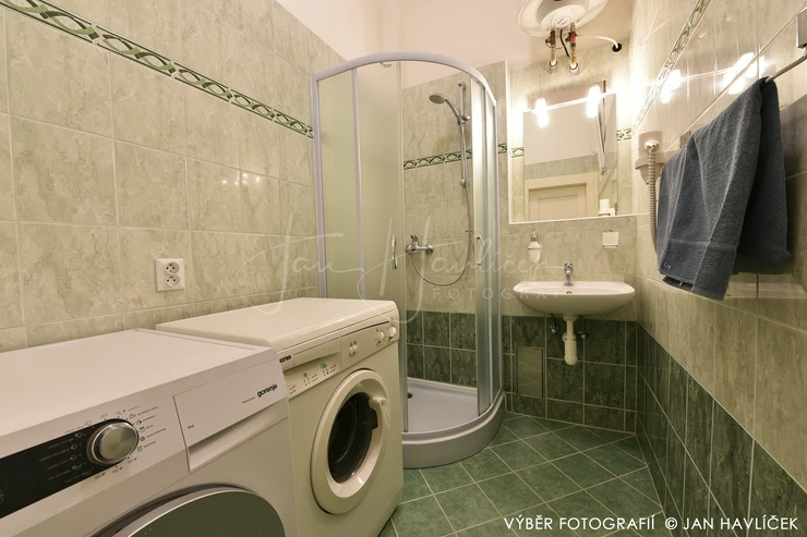 The apartment is located on the 3rd floor of a building with a lift. The windows face south-east towards a quiet inner courtyard. The equipment includes a kitchen unit, fridge with freezer, washing machine, dryer, bed with pull-out extra bed and mattresses, wardrobes, table, chairs and armchairs. The apartment also comes with a 4 m² cellar.