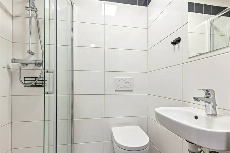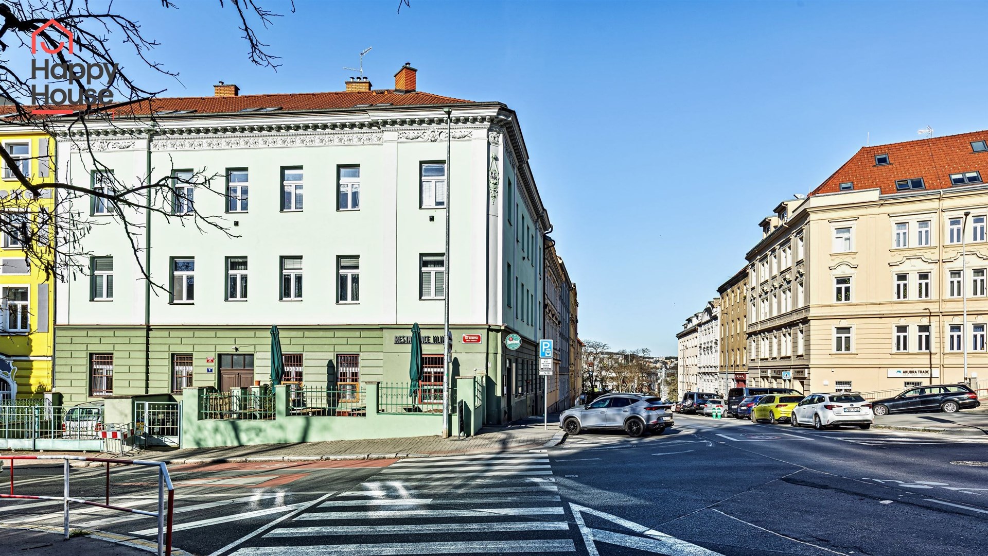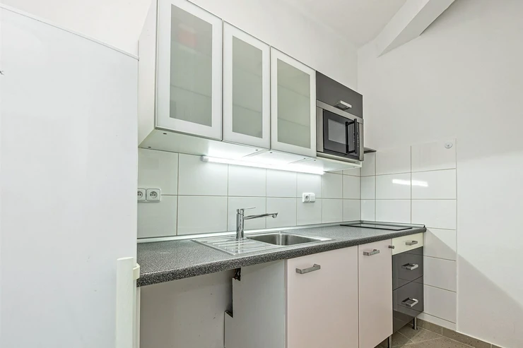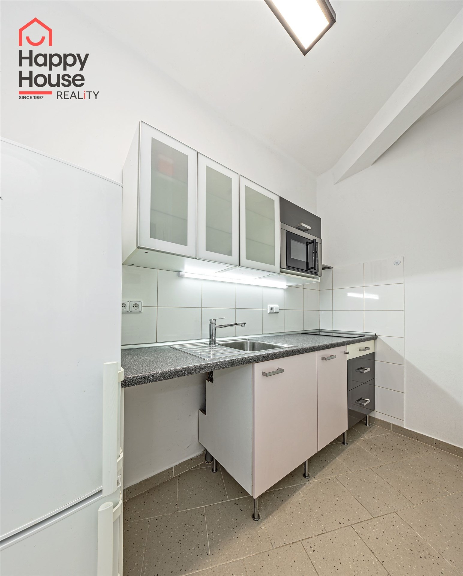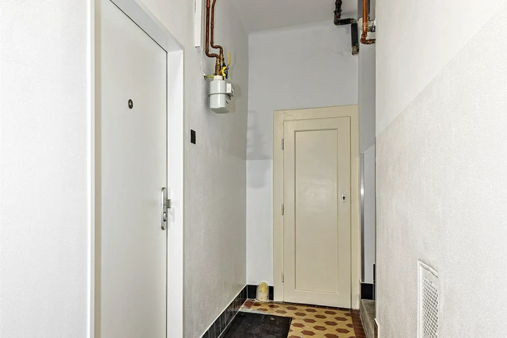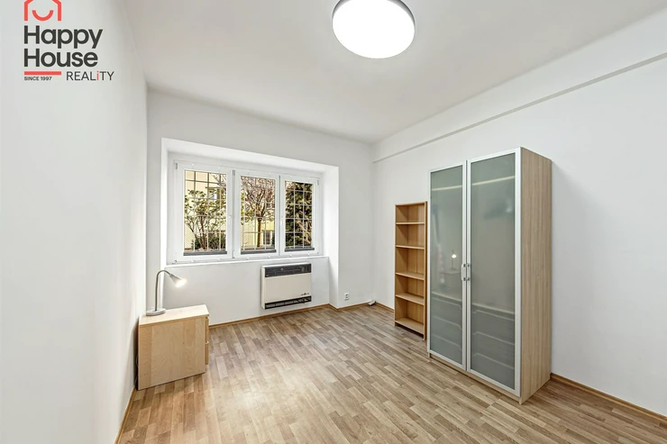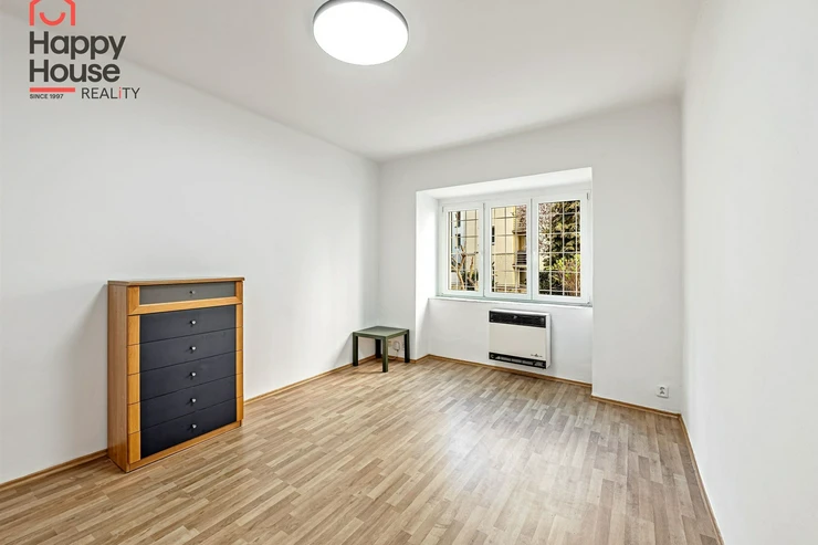 We are offering for rent a bright 2+1 apartment located in the lowered ground floor of a brick house in the attractive area of Prague 4, Nusle. The apartment is unfurnished and features a larger hallway, 2 separate rooms, a small kitchenette, a bathroom, a separate toilet, and a distinct storage space (cellar). It has been partially renovated. The kitchen unit is equipped with a refrigerator, a ceramic double hob, and a microwave oven. The bathroom has a shower. Both rooms overlook a shared front garden. The apartment is heated by a Waw gas heater and hot water is provided by a boiler. Flooring includes laminate floating floors and either terrazzo or tiles. Window screens and blinds are installed. There is a security door. Internet connection is available. Street parking – zones.