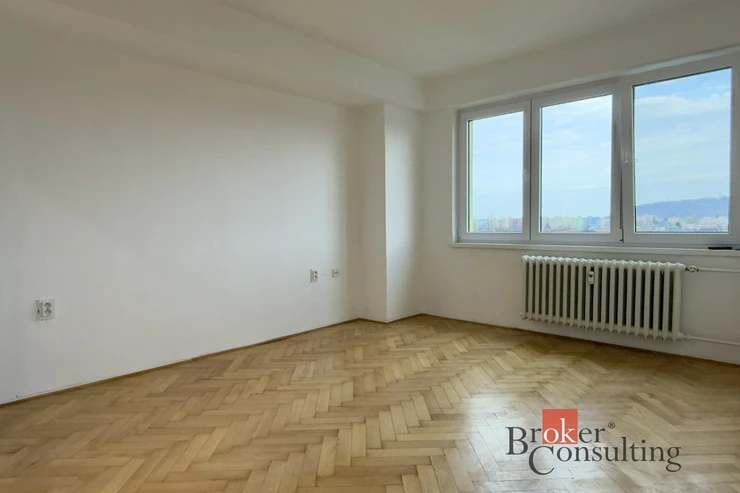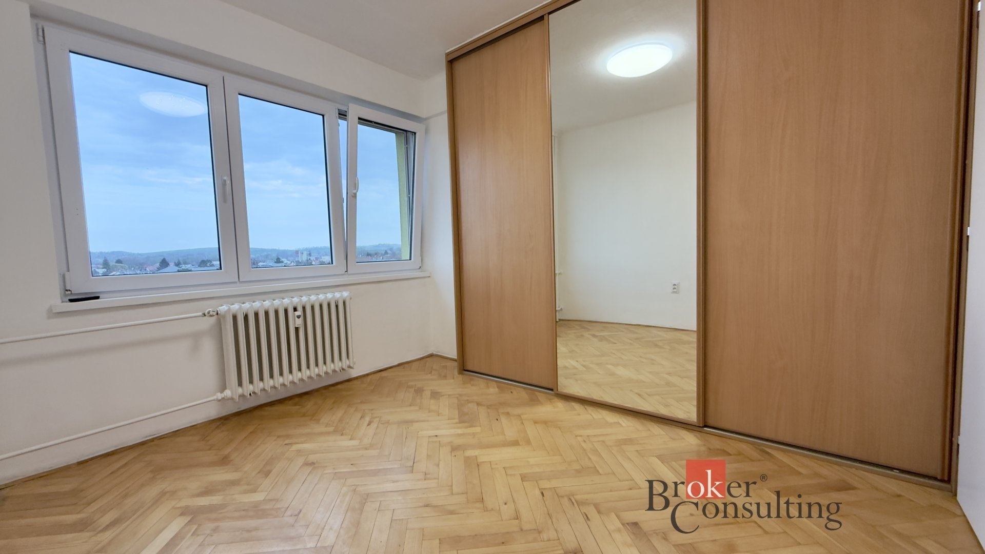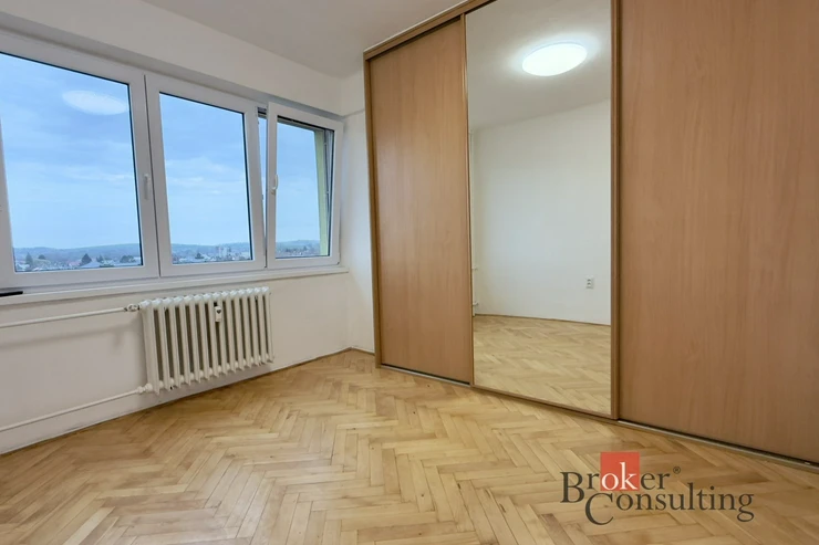 Byt je situován v 7. nadzemním podlaží z celkových 13 NP panelového domu s výtahem přímo na patře. Z bytu je úžasný výhled na celé město. V rámci modernizace proběhla částečná výměna kuchyňské linky včetně nového kombinovaného sporáku a dodání dalších spotřebičů. Modernizací prošly také oba pokoje a koupelna. K bytu náleží nová sklepní kóje, která nabízí bezpečný a praktický úložný prostor.