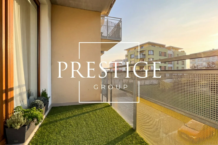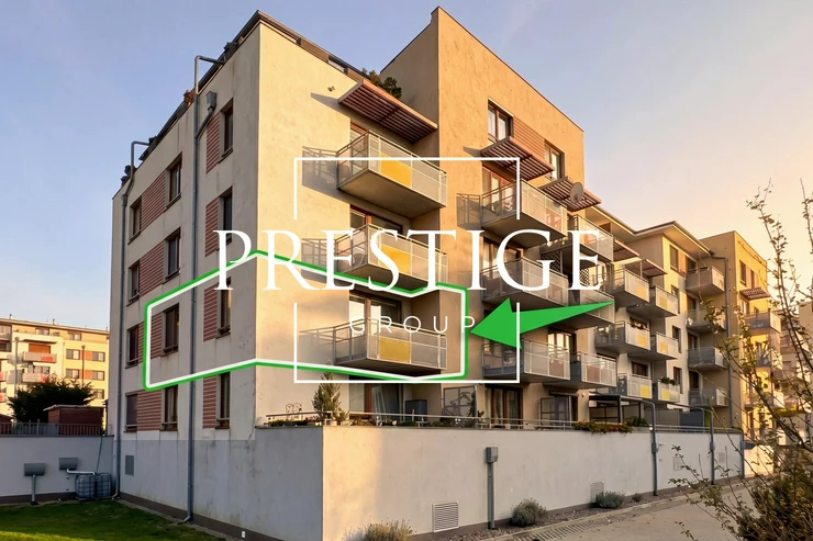 PRESTIGE GROUP offers for rent a 2+kk apartment with a total area of 54 m², including a balcony, storage unit, and garage parking space, located in a modern new building in a quiet area of Prague–Čakovice, Bermanova Street.