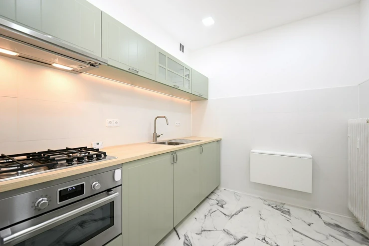 Completely renovated apartment, fully and luxuriously furnished 2+1, 50m2 with balcony and cellar, situated on 1st floor of a very well-maintained building with a new elevator in Prague 3, Jarov, Křivá ul...